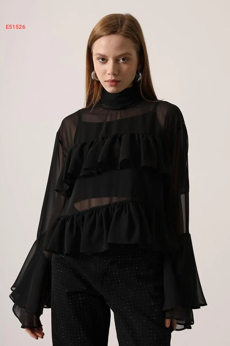 بلوزة شيفون كشكش بأكمام كلوش