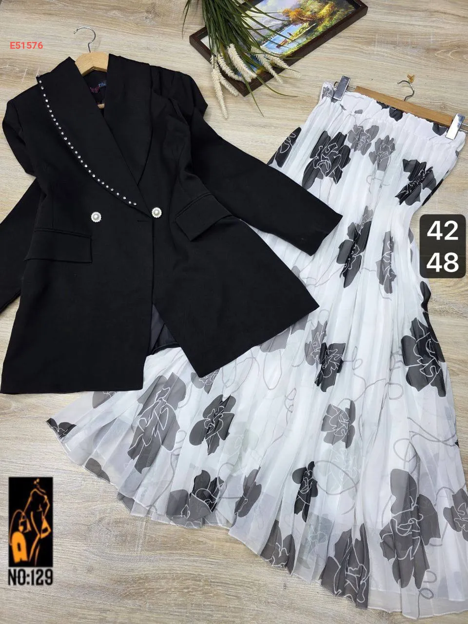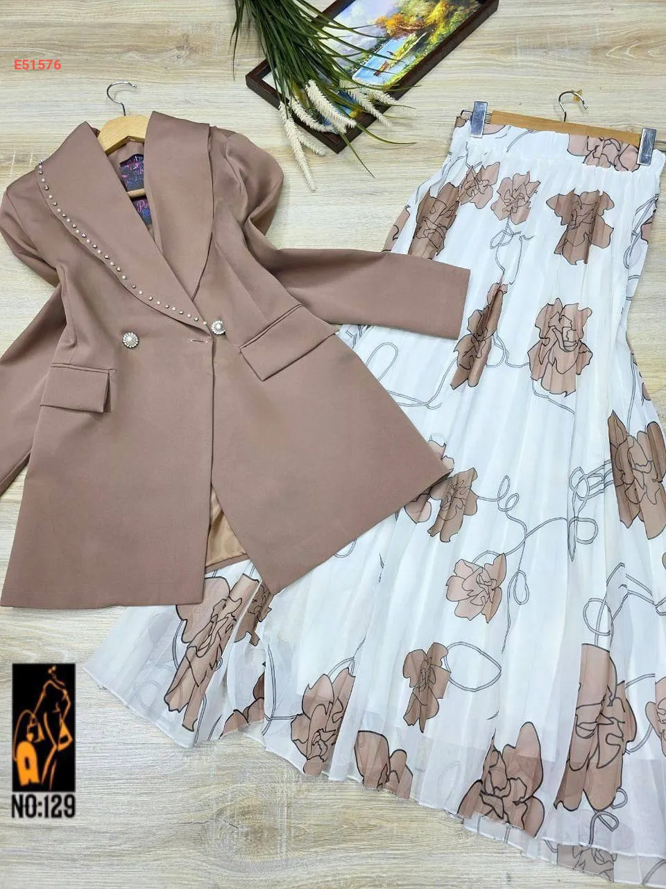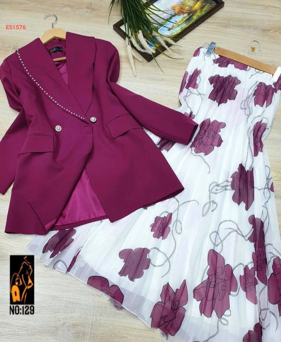 Yeni model 🤩🤩 38/40/42/44/46/48 iki li takim $💥💥💥 طقم قطعتين جاكيت مبطن تنورة شيفون مبطن