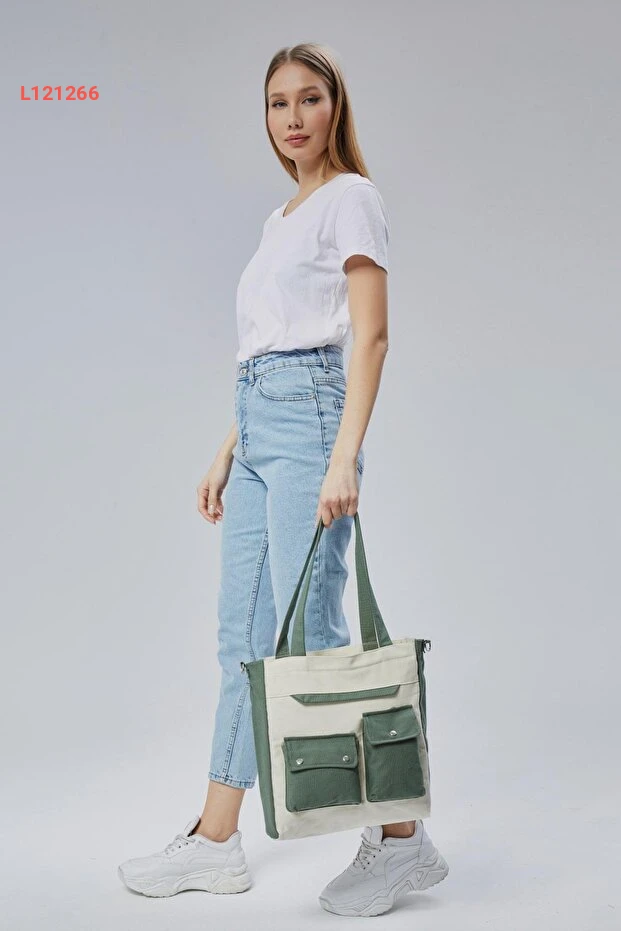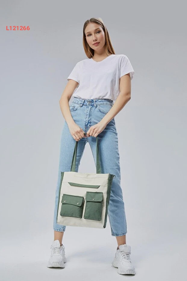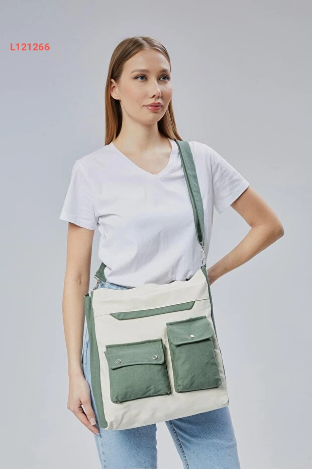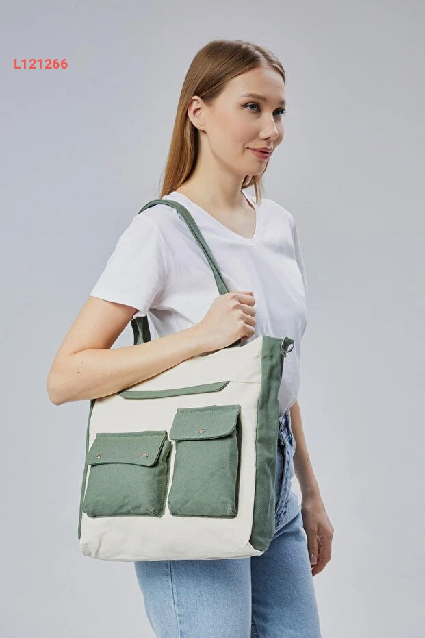 حقيبة قماش شجرة السرو بجيب أمامي (أخضر نعناعي-كريمي)