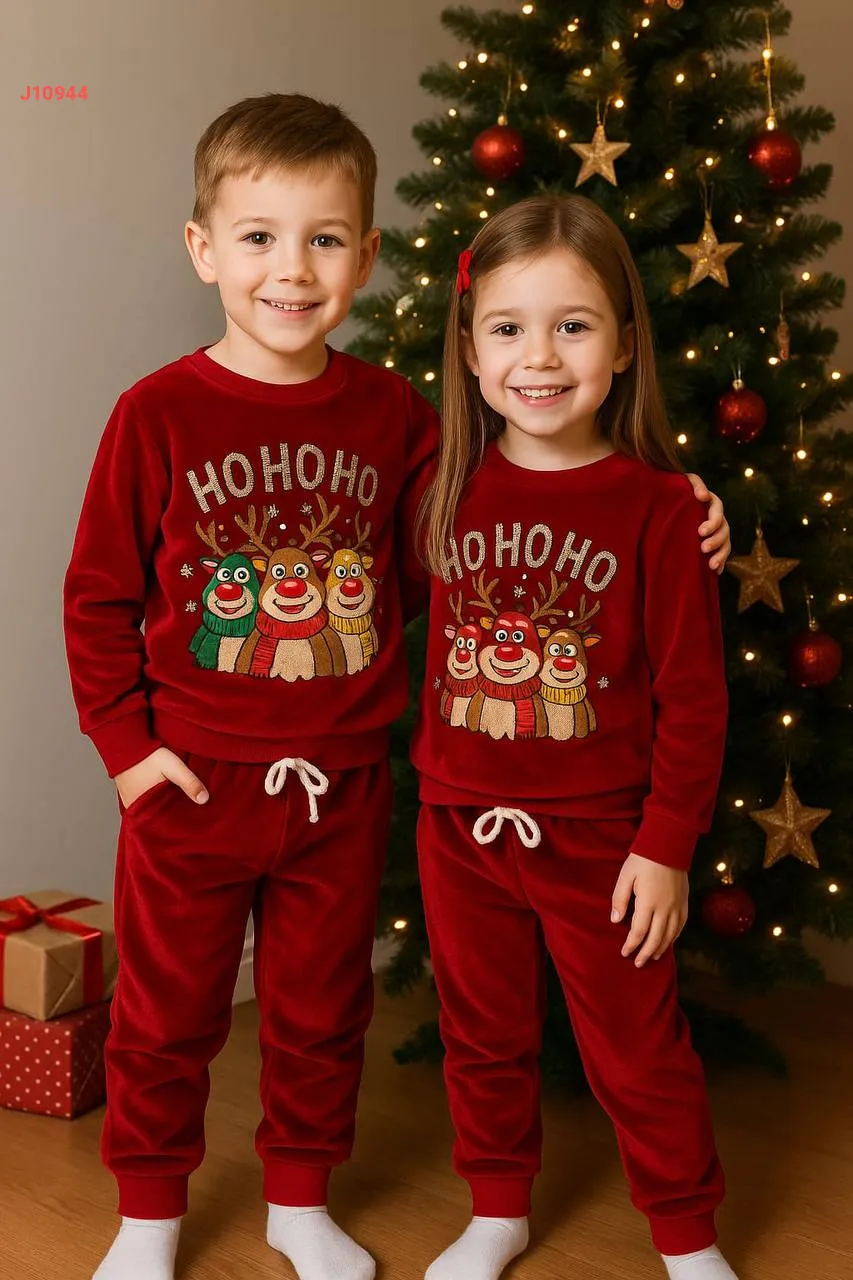 بيجامة مخمل كريسمس صبياني بناتي