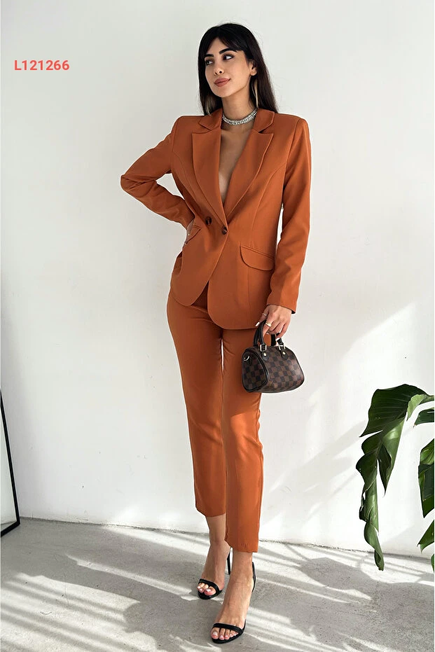 استمتع بأناقة لا تضاهى مع طقم البدلة العصري من "ديأفيس": جاكيت بليزر بطراز كروزاين وسروال هافوك بتصميم أنيق. يتميز بطبعة القرفة الجذابة التي تضفي لمسة من الفخامة على إطلالتك، بينما يوفر لك القماش عالي الجودة الراحة المثلى والملاءمة المثالية. ارتدي هذا الطقم في مناسباتك الخاصة أو في المكتب لإظهار أسلوبك الفريد بكل ثقة!