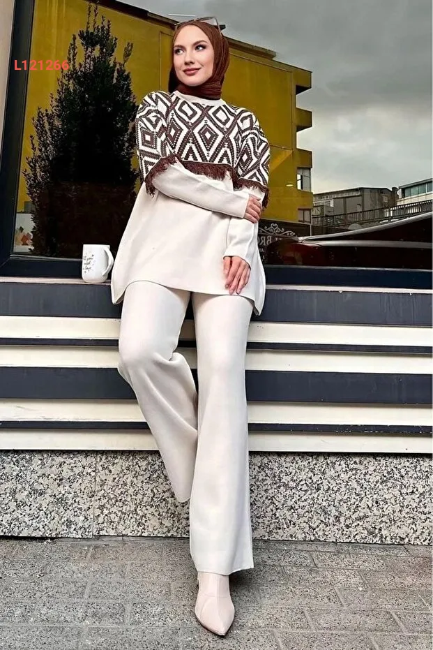 استمتعي بأناقة مريحة مع طقم Cloudy Kids من التريكو باللون البيج، الذي يتضمن tunik وبنطلون متناسق. يجمع هذا التصميم بين الراحة والأناقة، مما يجعله الخيار المثالي لطفلتك للتألق في مختلف المناسبات. مصنوع من خامات عالية الجودة، يضمن الراحة طوال اليوم، مما يجعلها قطعة أساسية في خزانة ملابسها.