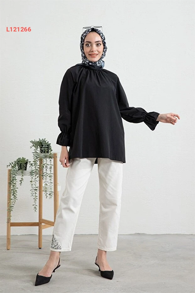 استمتع بأناقة العصرية مع قميص CNG MODA الأسود من القماش البوبلين، الذي يتميز بأكمام مزركشة تضفي لمسة أنثوية جذابة. تصميمه الفريد يضمن لك الراحة والأناقة في أي مناسبة، مما يجعله خيارًا مثاليًا لإطلالة مميزة. ارتديه مع جينز أو تنورة للحصول على مظهر أنيق ولافت!