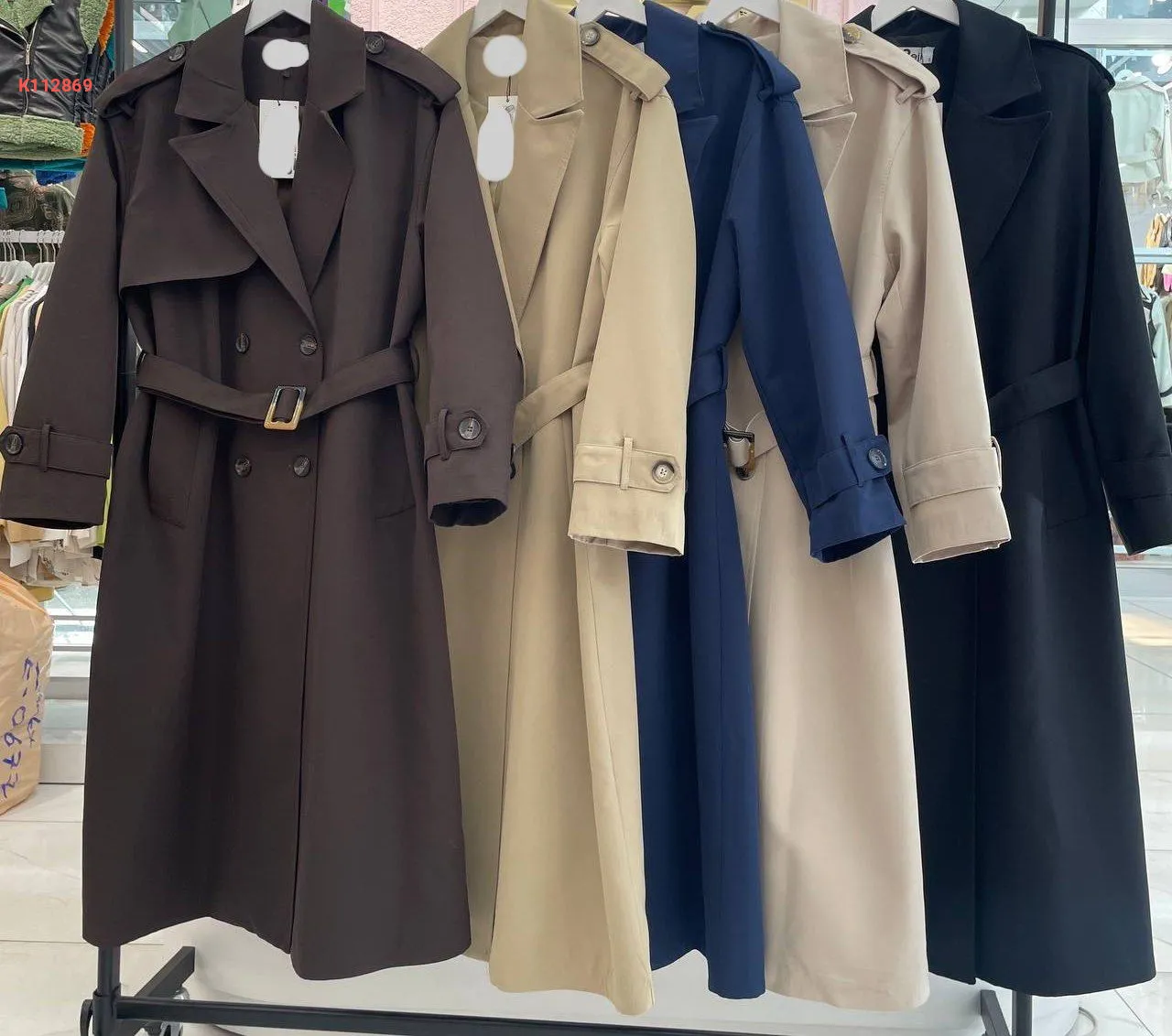 معطف مع حزام، بأزرار مزدوجة وجيب