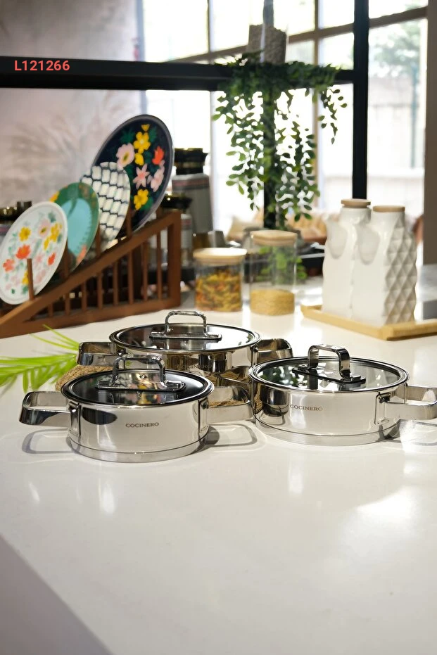 طقم أواني طهي عالية اللمعان من ستيل 6 قطع - كوكينيرو 1139