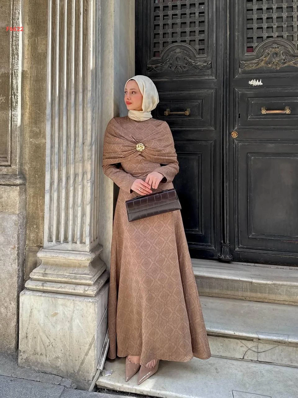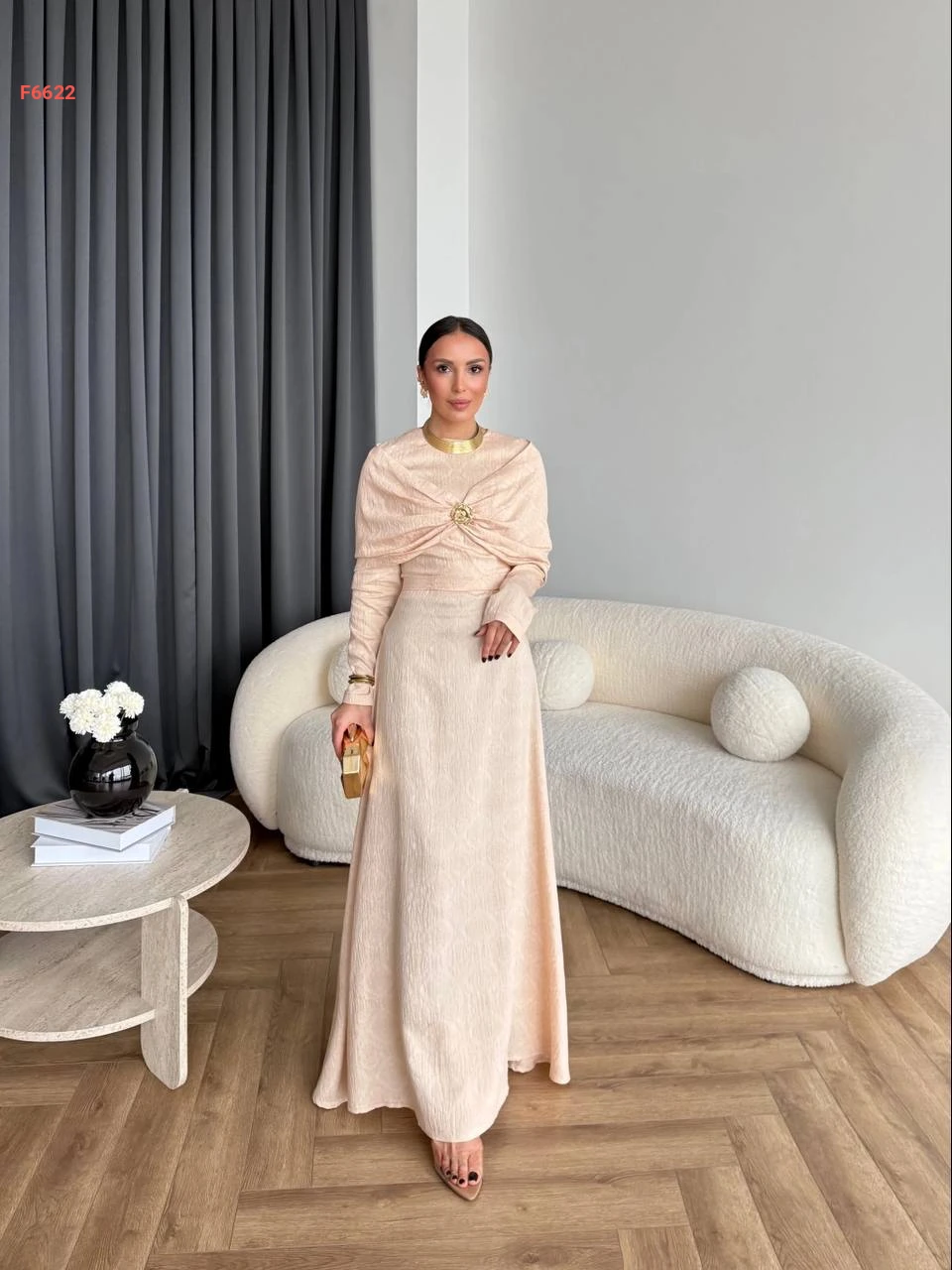 فستان كويل مع تفاصيل كاب مجمع ببروش