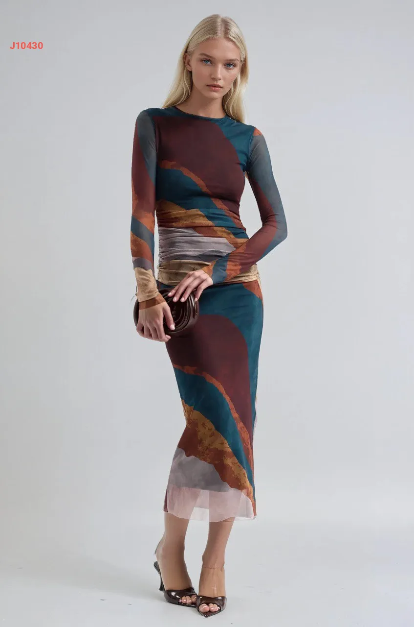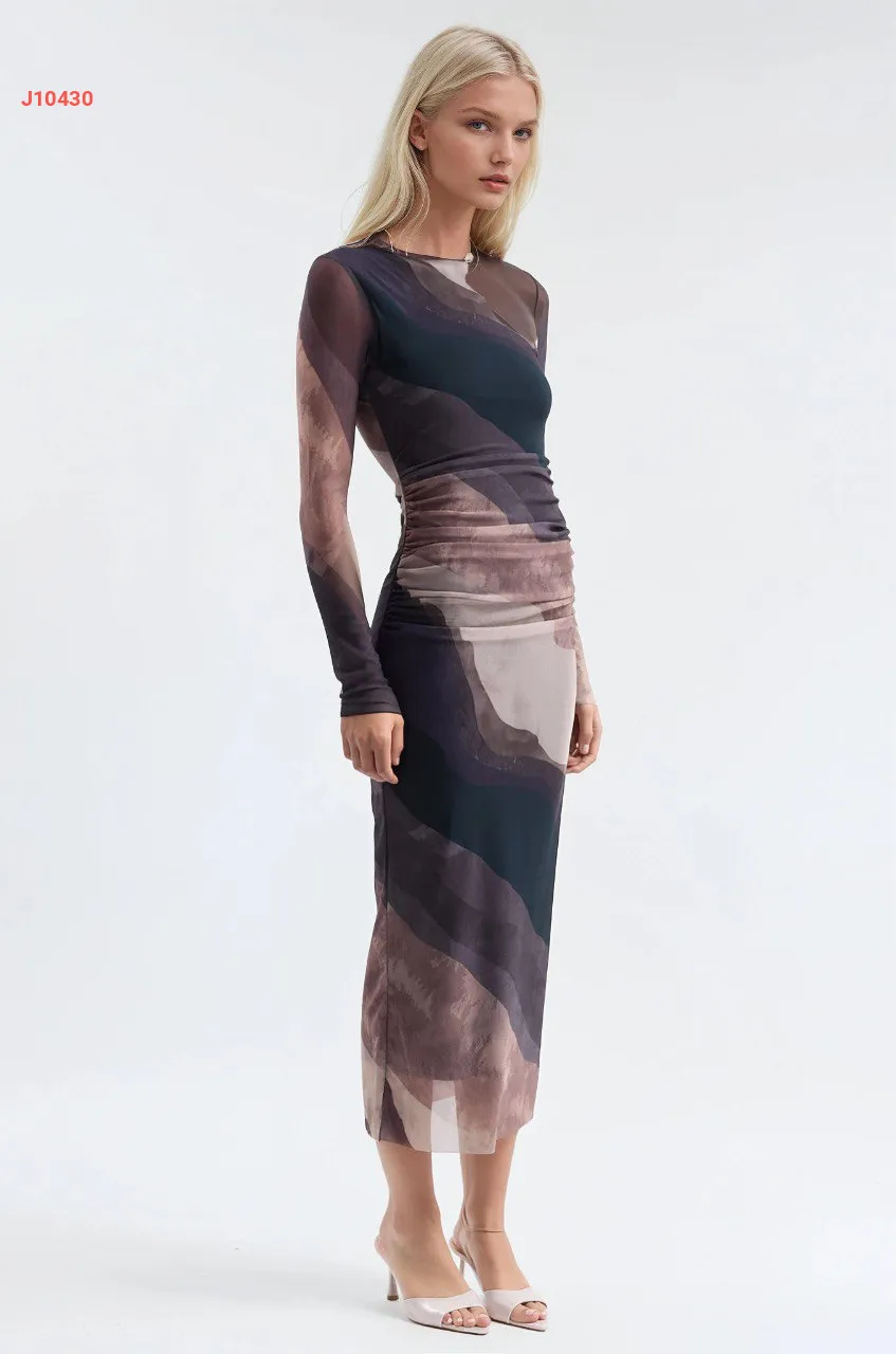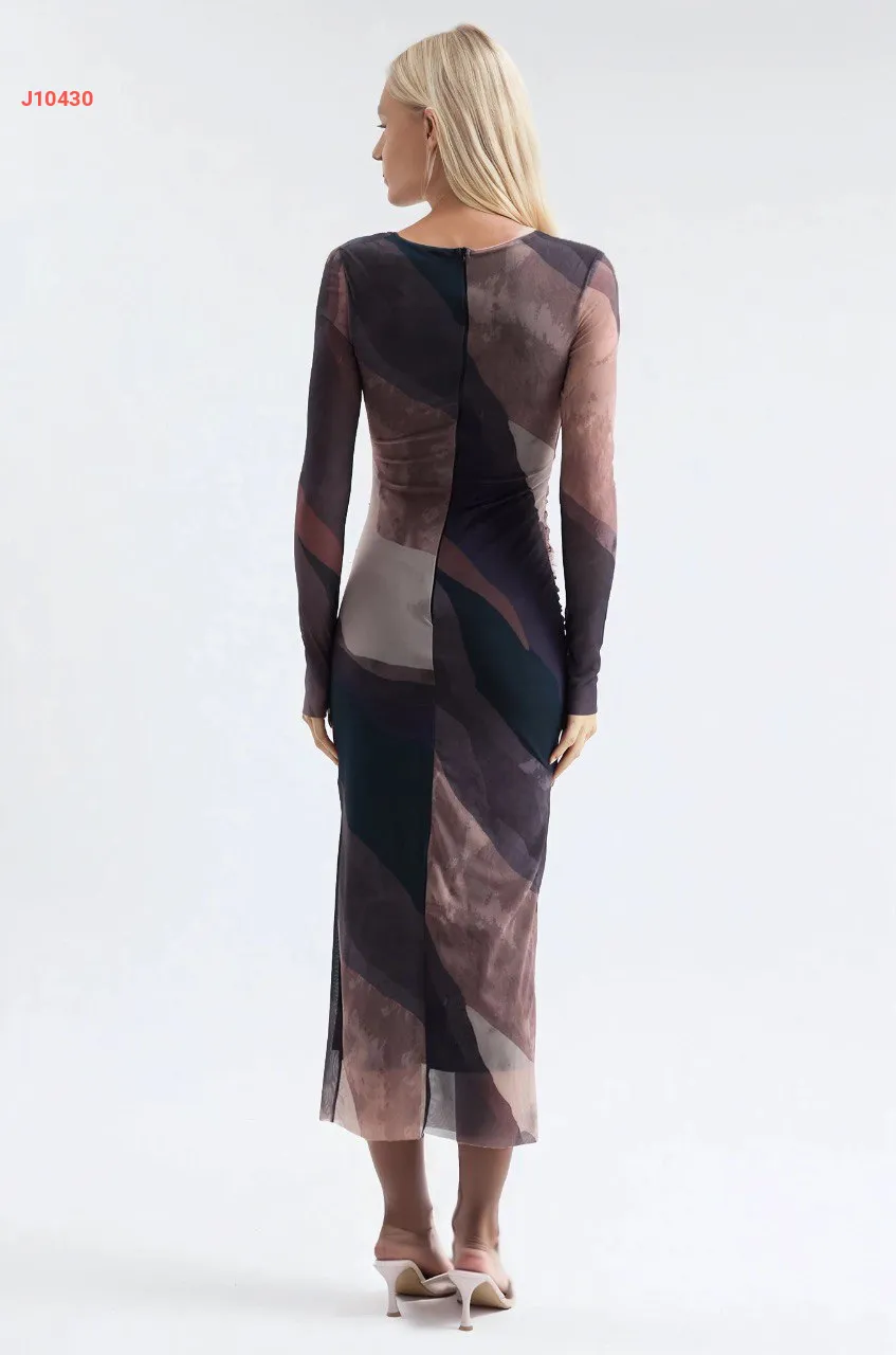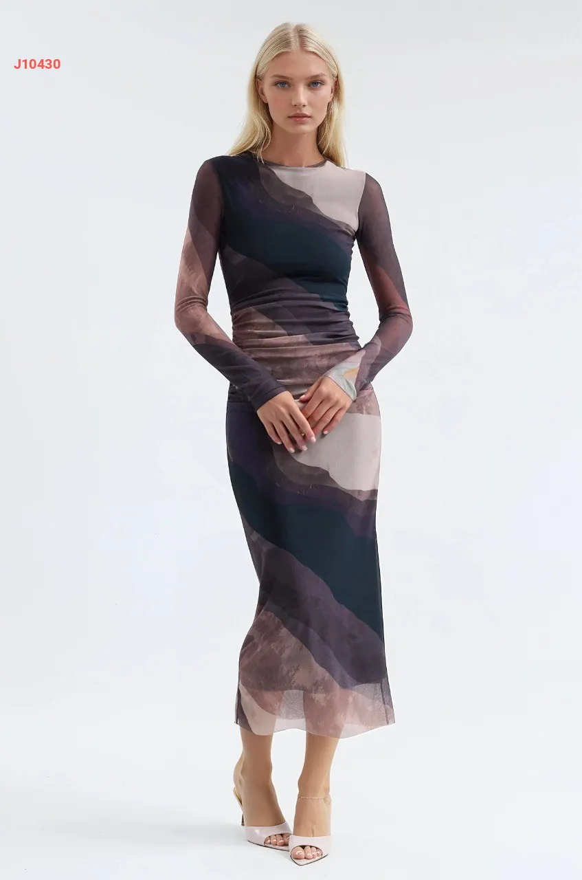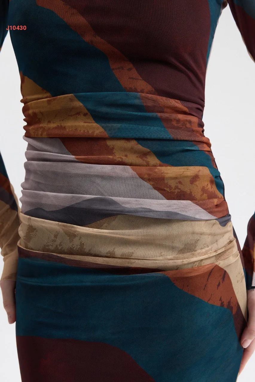 فستان تول ملون بتفاصيل مجمعة