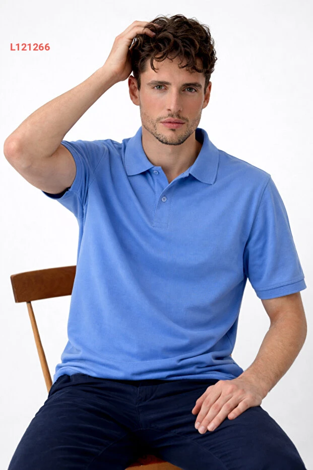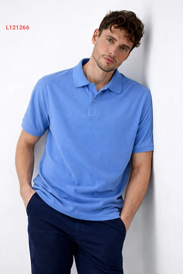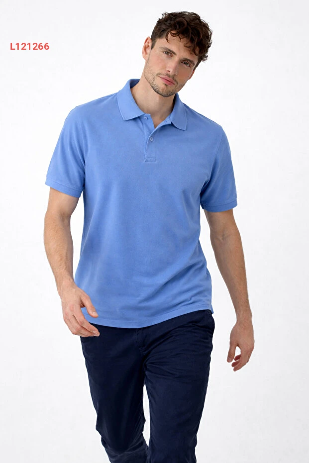 تيشيرت بولو مريح للرجال باللون الأزرق الفاتح من كومباين ميخائيل