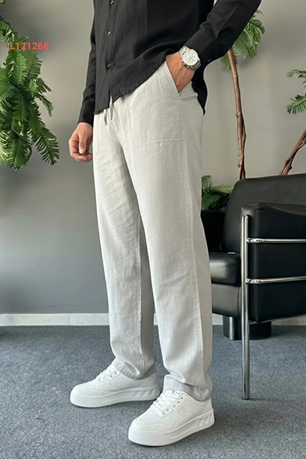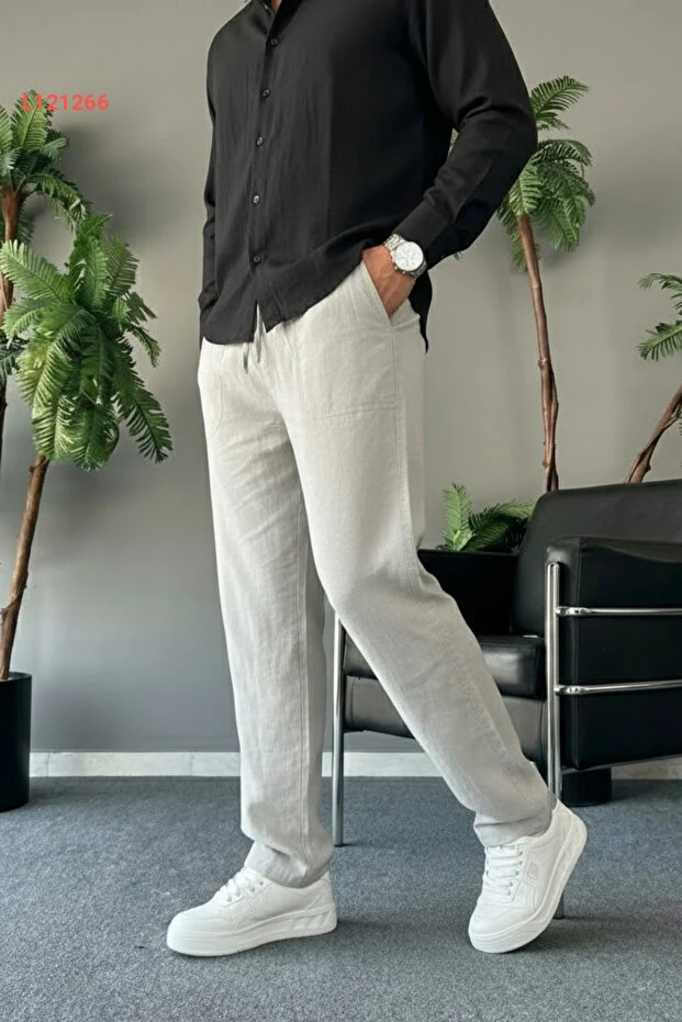 بناطيل كتان فضفاضة رمادية للرجال من كومباين ميخائيل لموسم الصيف