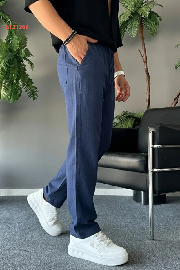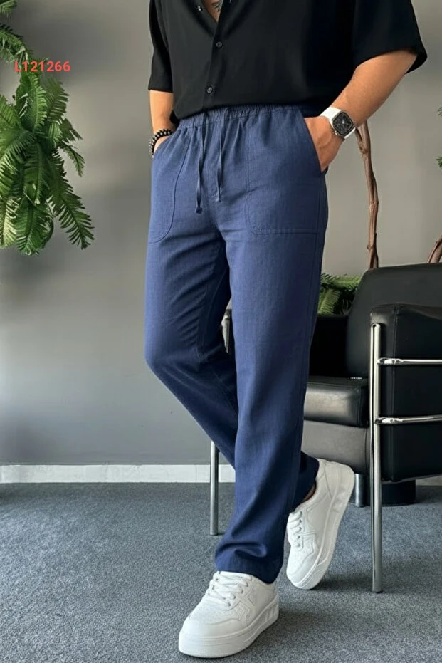 بناطيل كتان صيفية مريحة للرجال - كحلي من كومبيني ميخايل