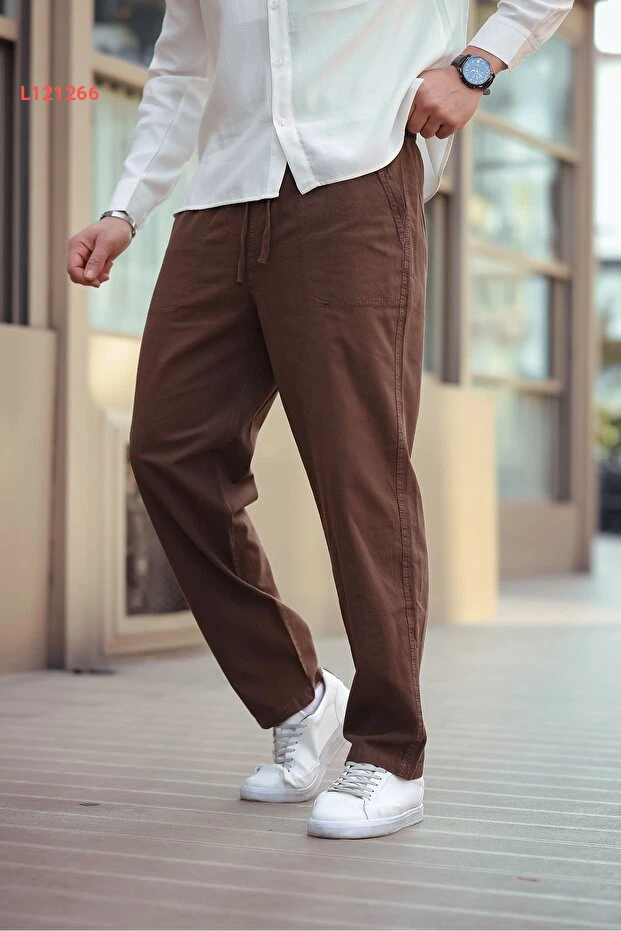 بناطيل كتان للرجال من كومبين ميخائيل بقصة واسعة - بني