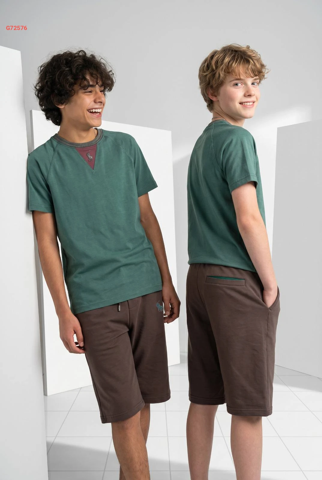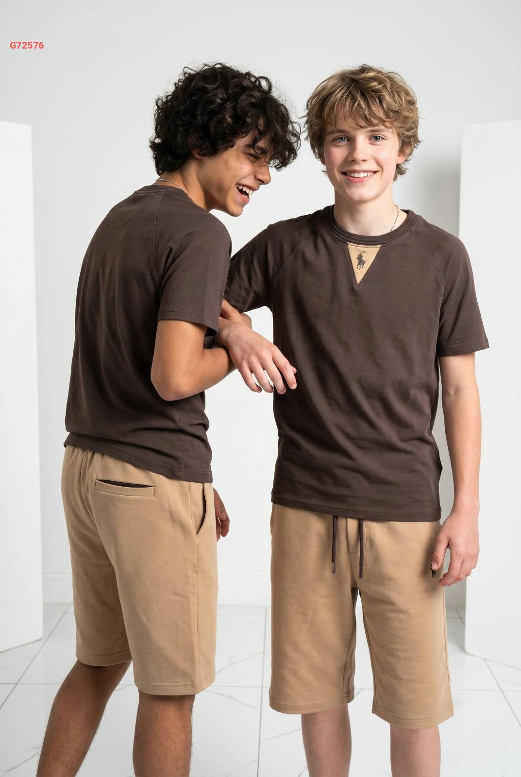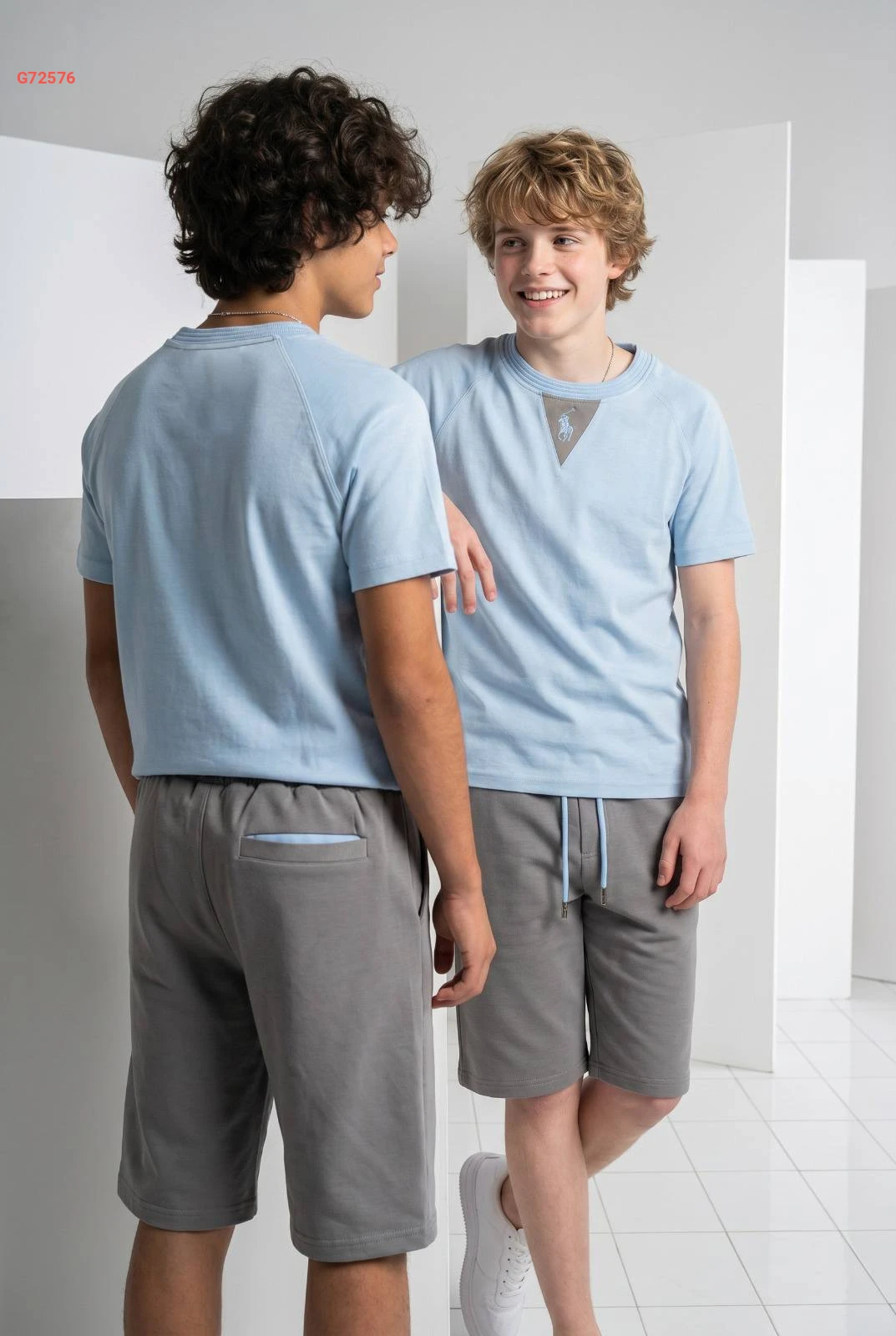 بيجامة ماركة بولو مريحة تتكون من تيشرت (نصف كم) شورت قطني كاجوال