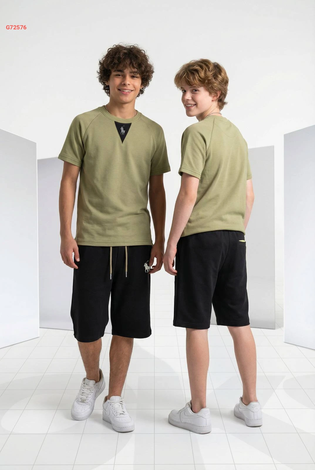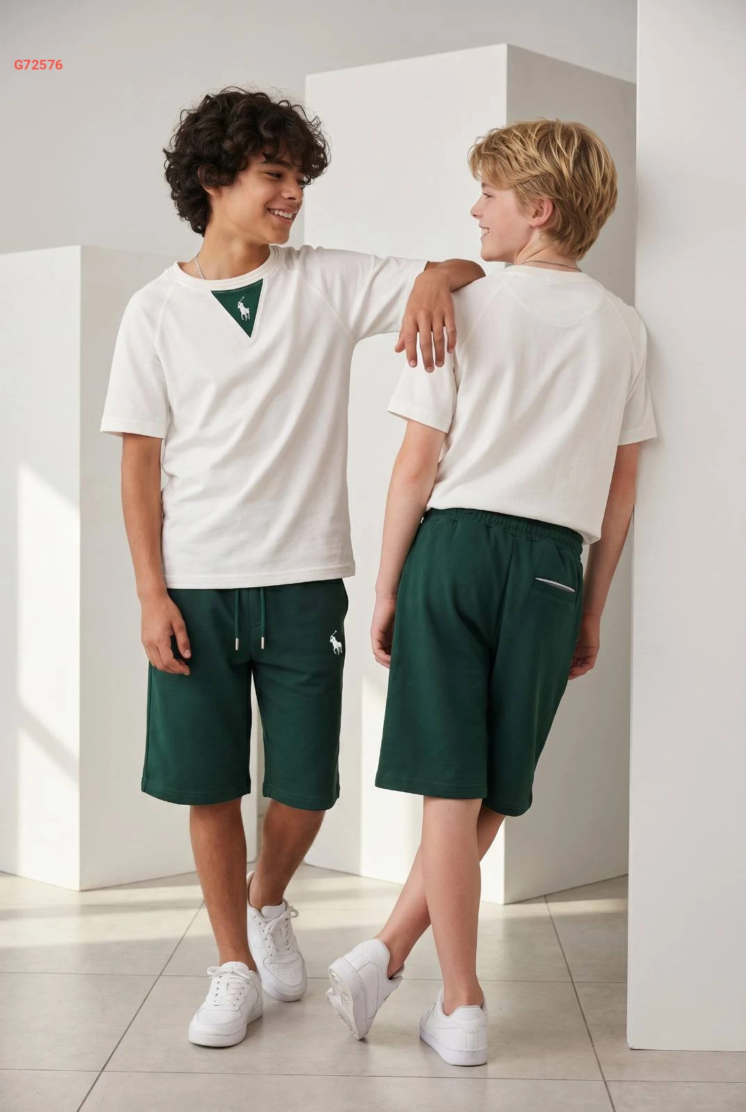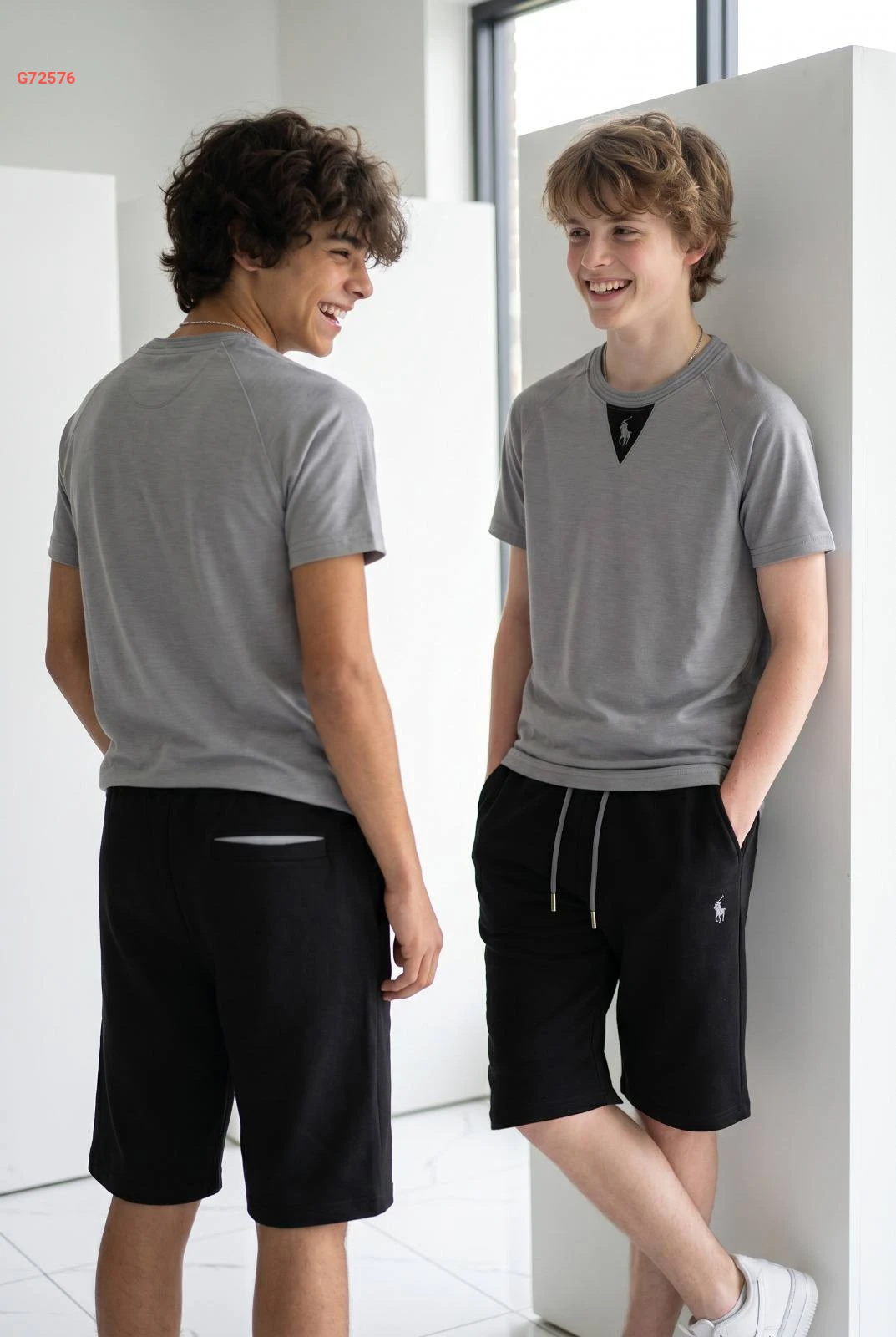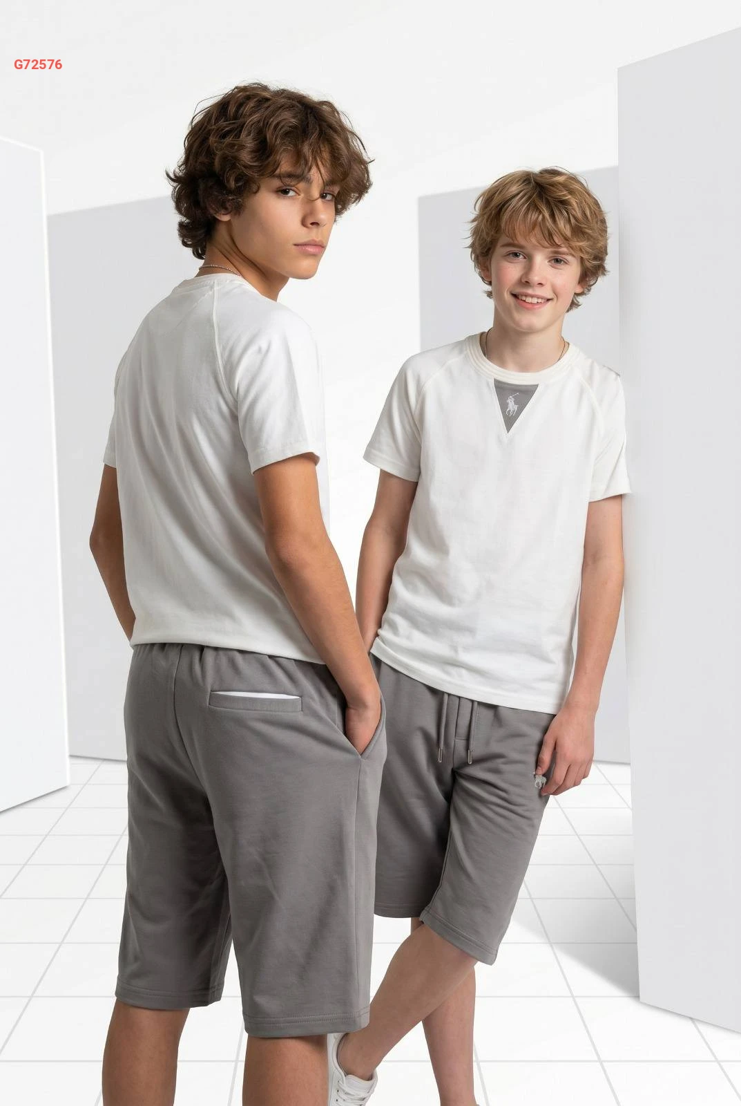بيجامة ماركة بولو مريحة تتكون من تيشرت (نصف كم) شورت قطني كاجوال