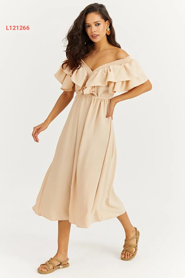 تألقي بإطلالة رائعة مع فستان "Cool & Sexy Kadın Vanilya Ön Arka V Volanlı" الذي يجمع بين الأناقة والراحة. تصميمه العصري مع التفاصيل المتدرجة يبرز أنوثتك، بينما يوفر لك حرية الحركة بفضل خامته الخفيفة. ارتديه للمناسبات الخاصة أو في النزهات اليومية لتظهري بأجمل حلة!