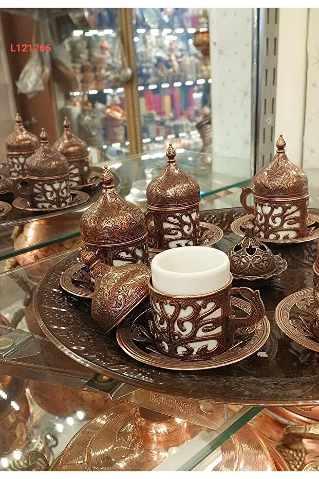 استمتع بتجربة القهوة التقليدية مع طقم فناجين "باكير سنتر" المصنوع من النحاس، والذي يتسع لستة أشخاص. يتميز بتصميمه الأصيل المزين بنقوش عثمانية رائعة، مما يضيف لمسة أنيقة لأي مناسبة. ستكون هذه المجموعة المثالية للاحتفاء بلحظاتك المميزة مع العائلة والأصدقاء.