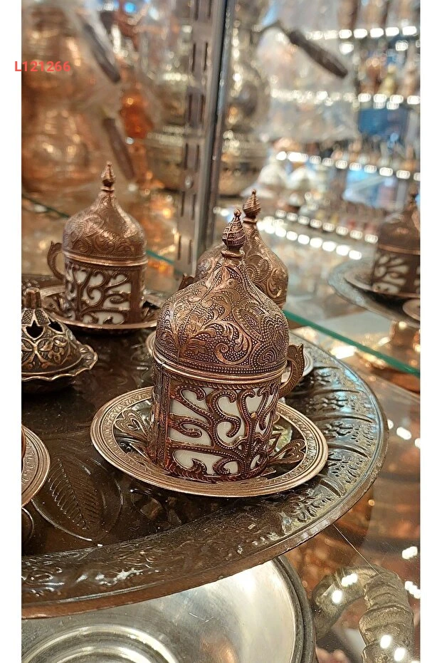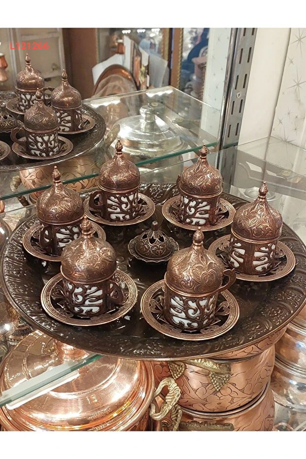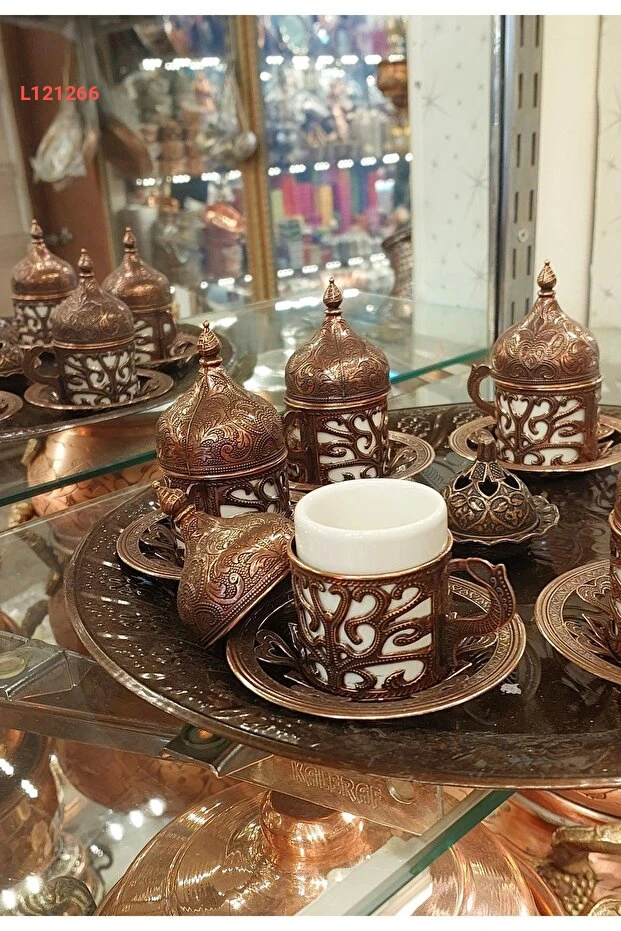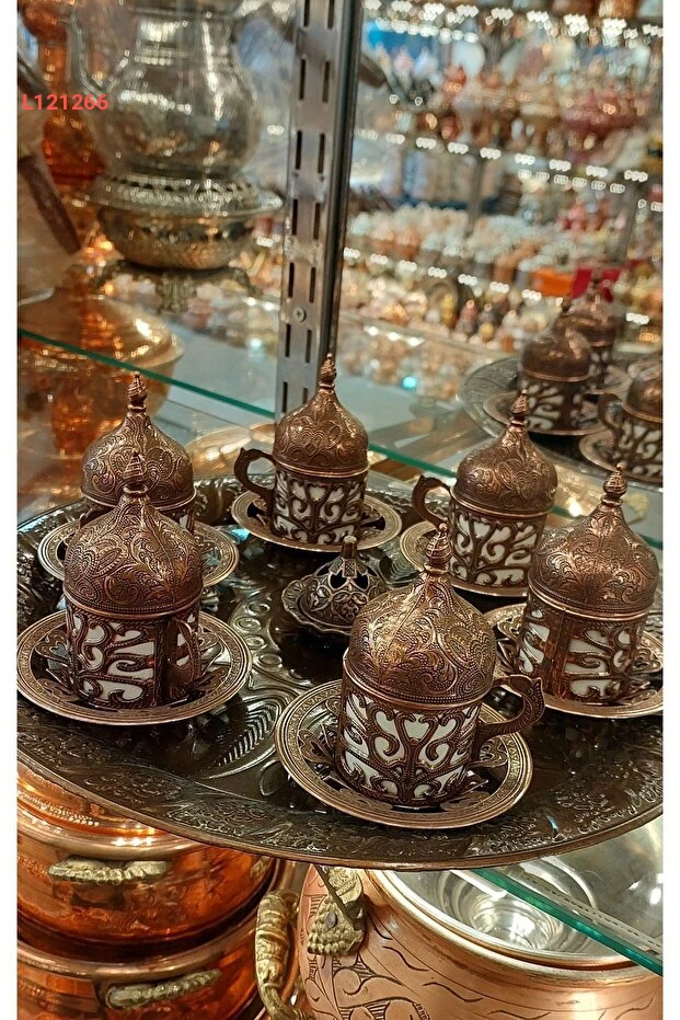 طقم فناجين قهوة تركي 6 قطع بتصميم عثماني نحاسي قديم