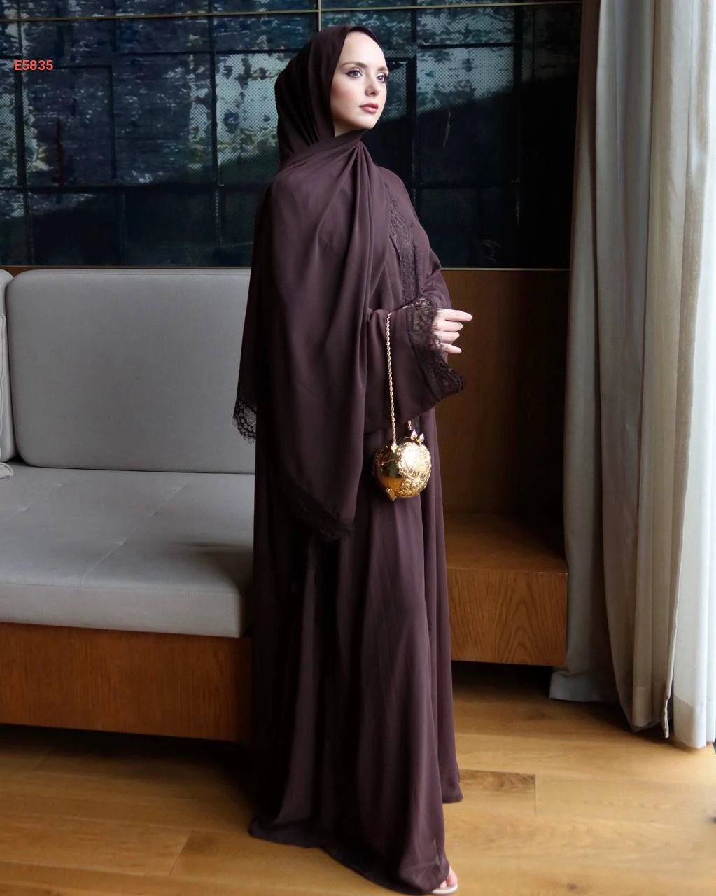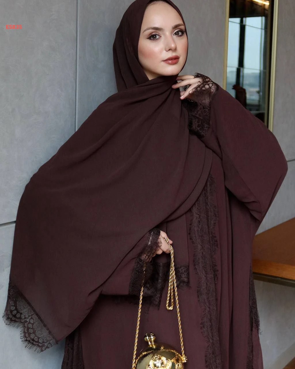 عباية مكلفة دانتيل مع شال