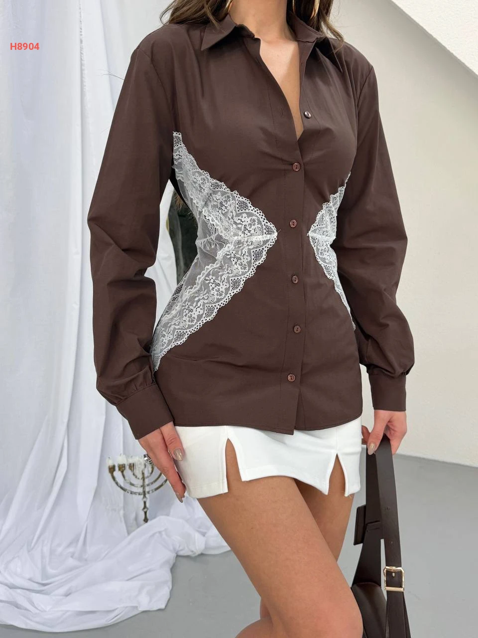 قميص بوبلين مكلف دانتيل