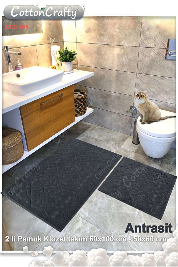 اكتشف رفاهية الحمام مع مجموعة بانو باموك دوكوك المكونة من سجادتين بتصميم لارا. بفضل القطن الناعم والمتين، توفر هذه السجادتيين الراحة والتوازن المثالي تحت قدميك، مما يجعل كل استخدام تجربة مميزة. احصل على لمسة من الفخامة في حمامك مع الأبعاد المثالية 60x100 سم و60x50 سم.