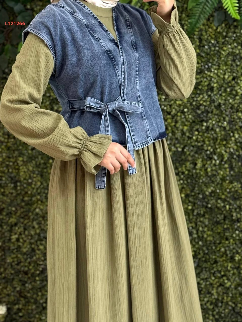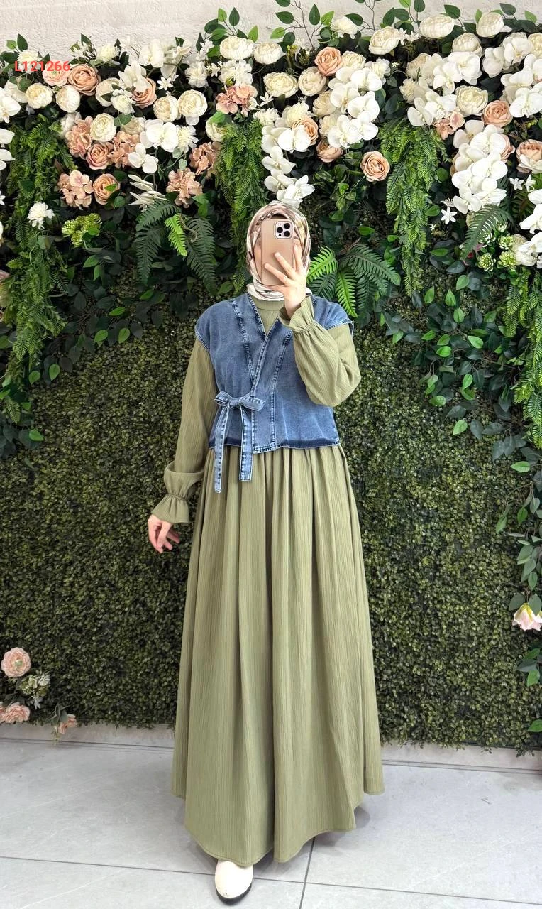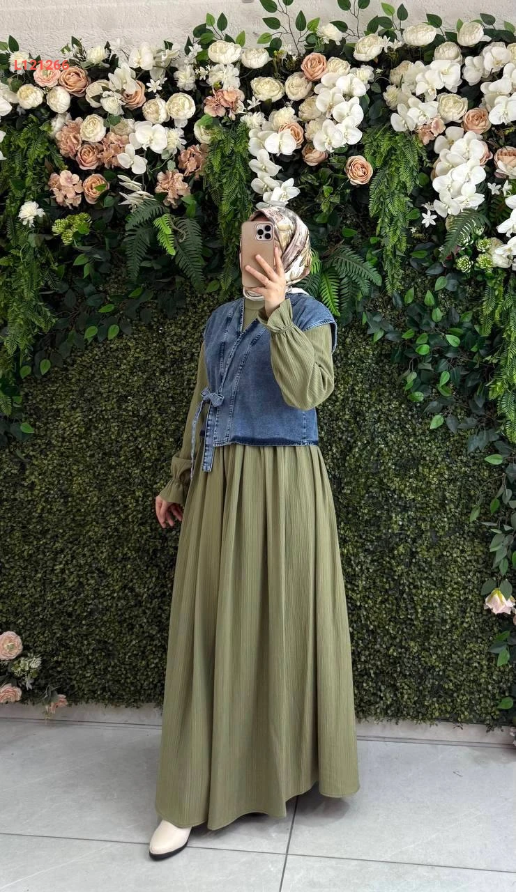 فستان قطن كتان مع يلك جينز
