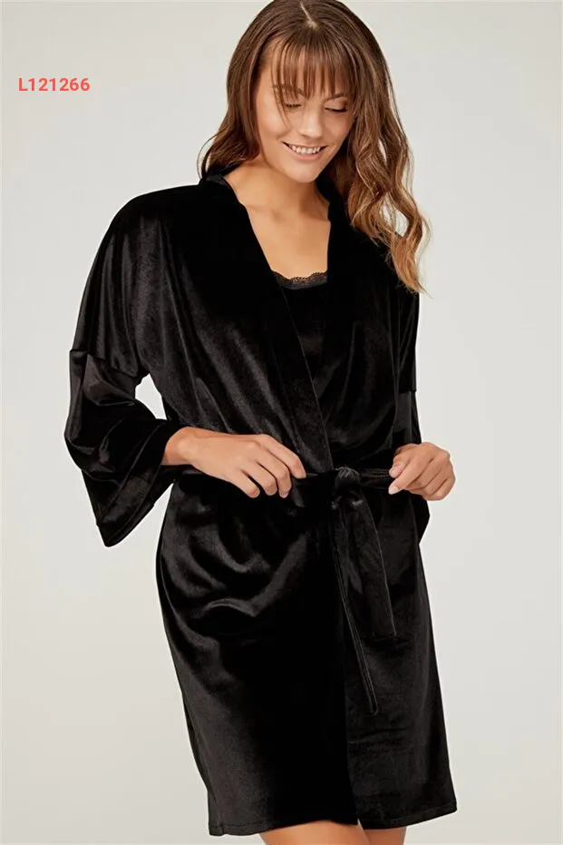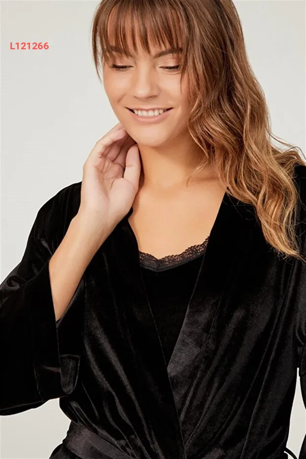 استمتع بالفخامة والراحة مع رداء السهرة النسائي من قطن هيل، المصنوع من القماش المخملي الأسود الناعم. يجمع هذا الرداء بين الأناقة والعملية، مما يجعله الخيار المثالي للاسترخاء في المنزل أو لإضفاء لمسة من الرقي على إطلالتك المسائية. تصميمه الجذاب يكمل مظهرك الأنيق ويضمن لكِ شعوراً بالراحة طوال الوقت.