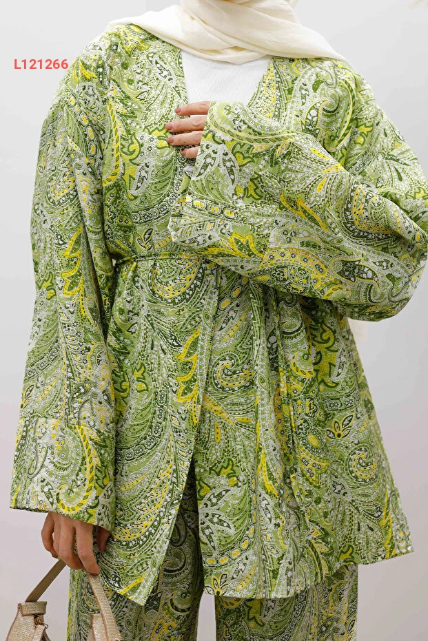 اكتشفي أناقتك مع طقم الكيمونو برباط الخصر من تسيتور دنياسي، لون أخضر جذاب يضفي لمسة عصرية على إطلالتك. يتميز التصميم بالراحة والمرونة، مما يجعله مثالياً للمناسبات اليومية أو اللقاءات الخاصة، مع الحفاظ على أناقتك المحتشمة. ارتدي الثقة وتمتعي بتميزك مع هذا الاختيار الرائع!