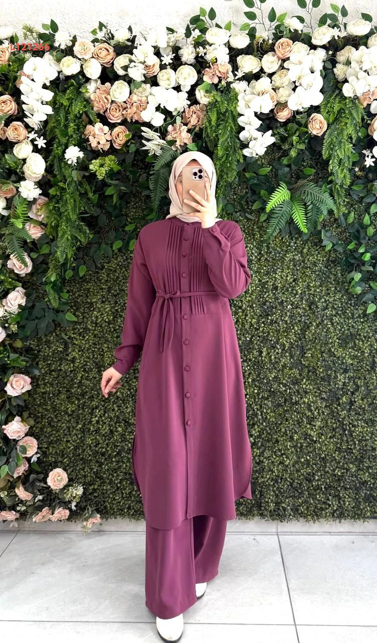 طقم بنطال كريب وقميص طويل