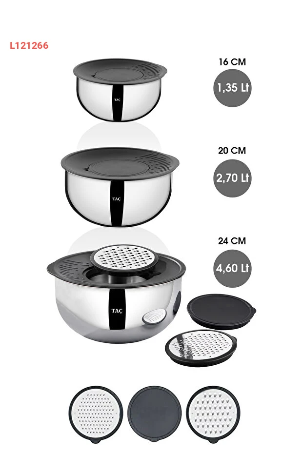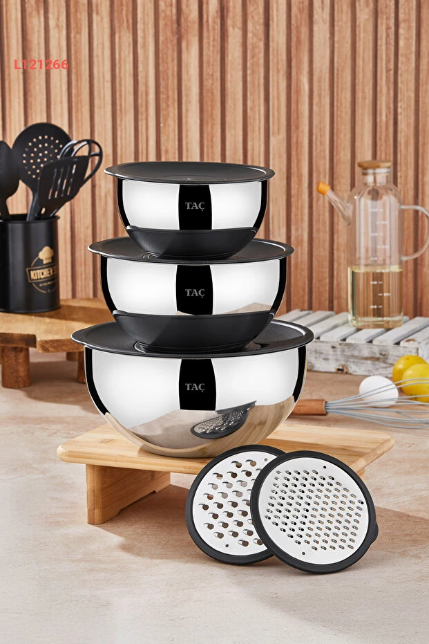 استمتع بتجربة الطهي المثالية مع مجموعة Taç MixMaster المكونة من 9 قطع من أكواب الخلط والتخزين، بأحجام 16-20-24 سم. تم تصميم هذه الأوعية بفعالية عالية وسهولة في الاستخدام، مما يجعلها مثالية لمزج المكونات وتخزين الطعام بطريقة منظمة وآمنة، مع ضمان الحفاظ على نضارة الأطعمة لأطول فترة ممكنة.