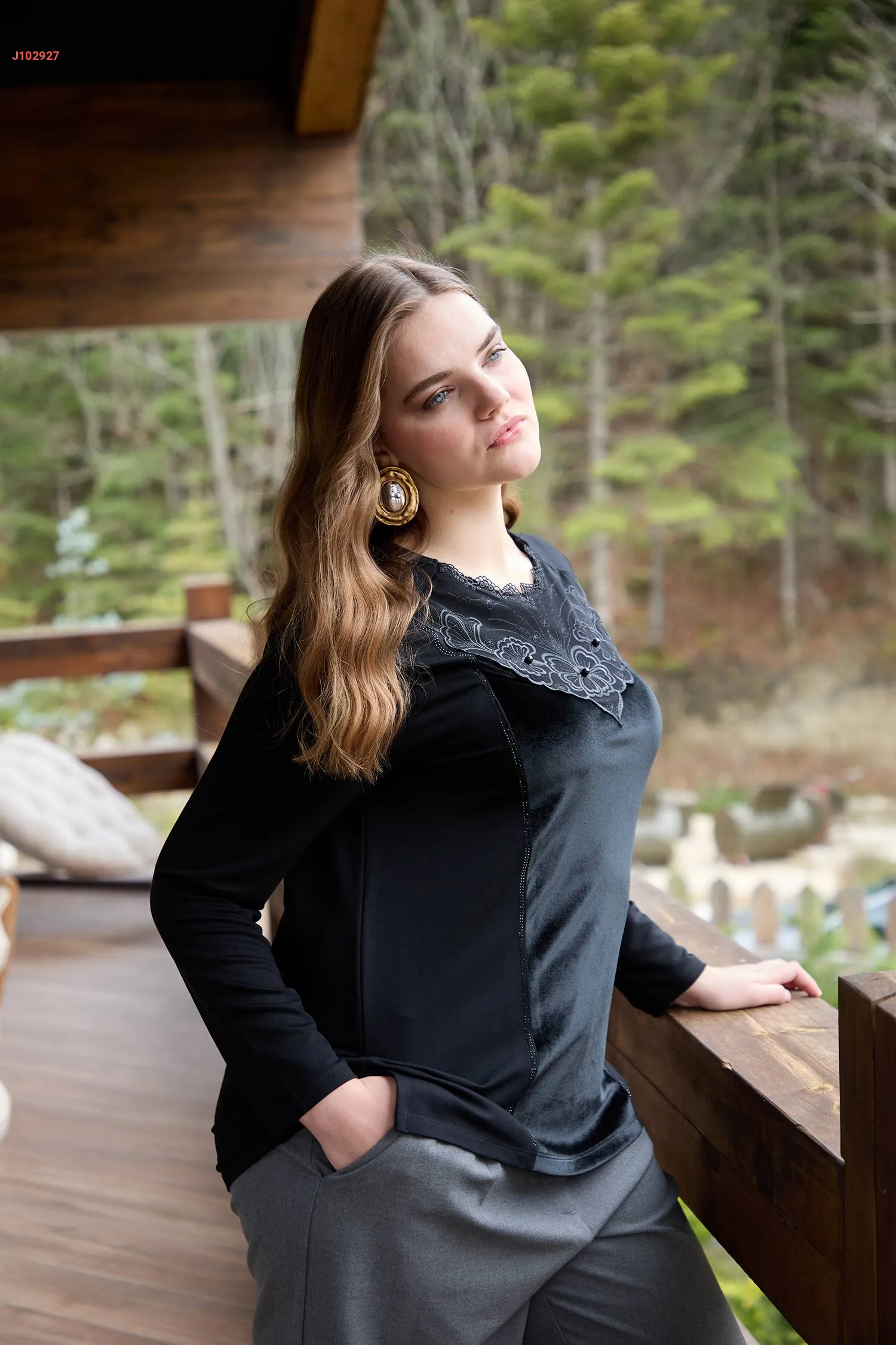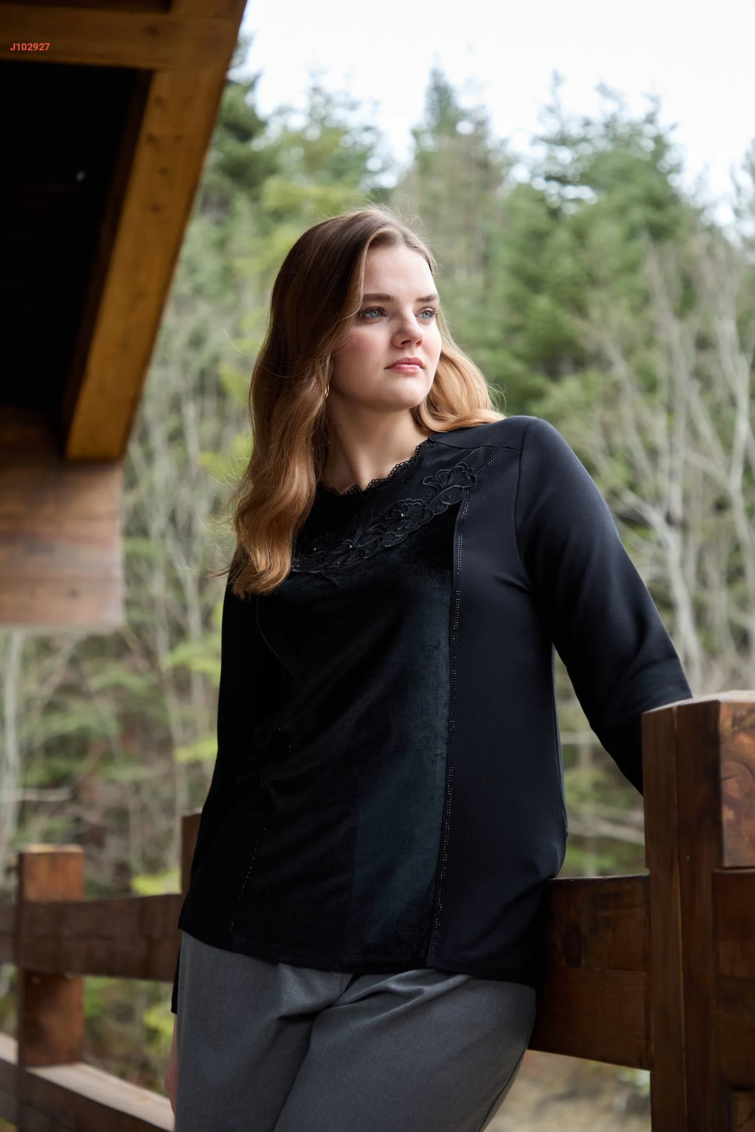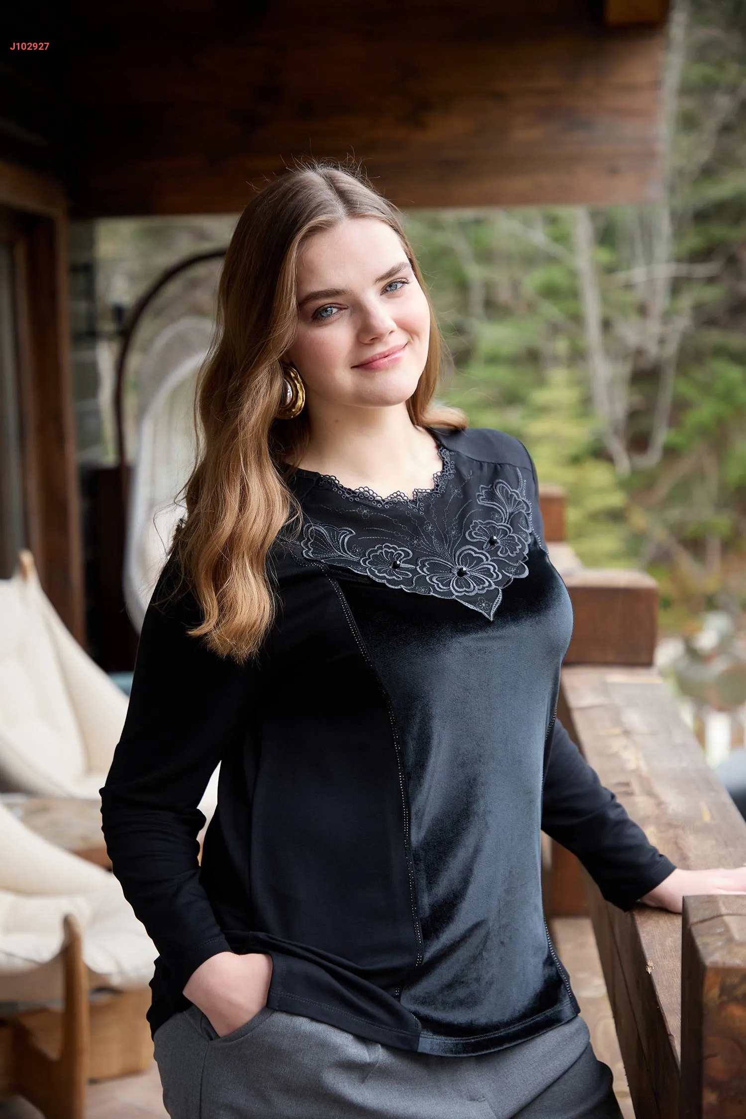 بلوزة كريستال ومخمل مطرزة