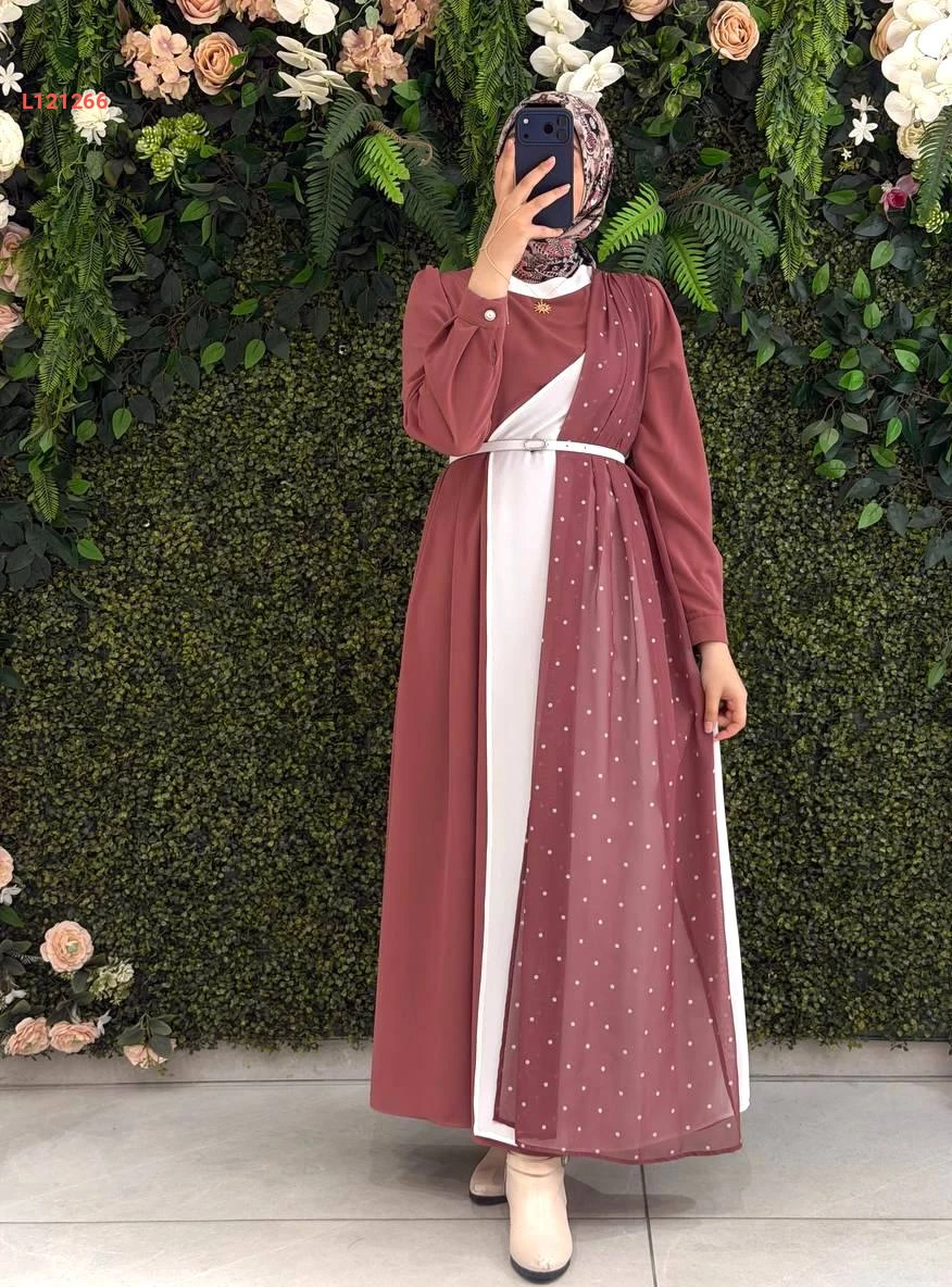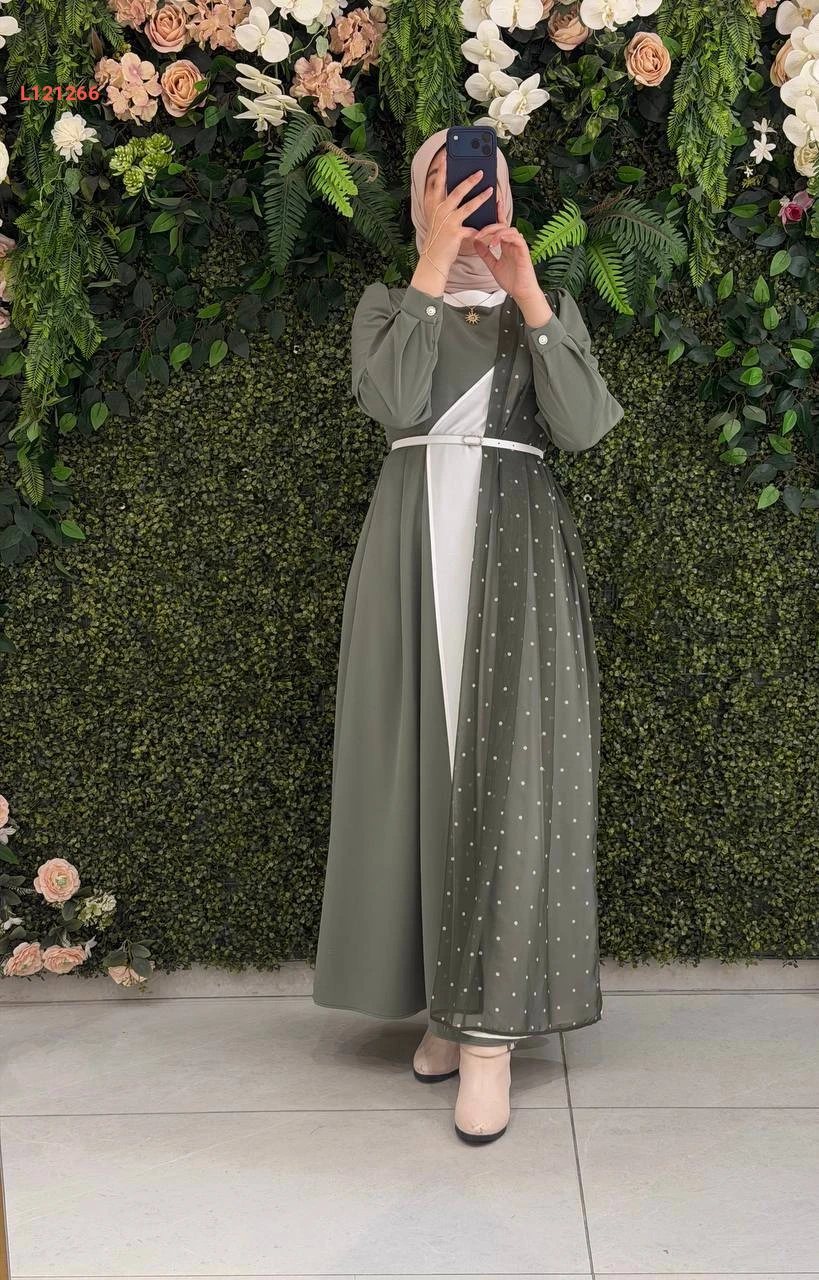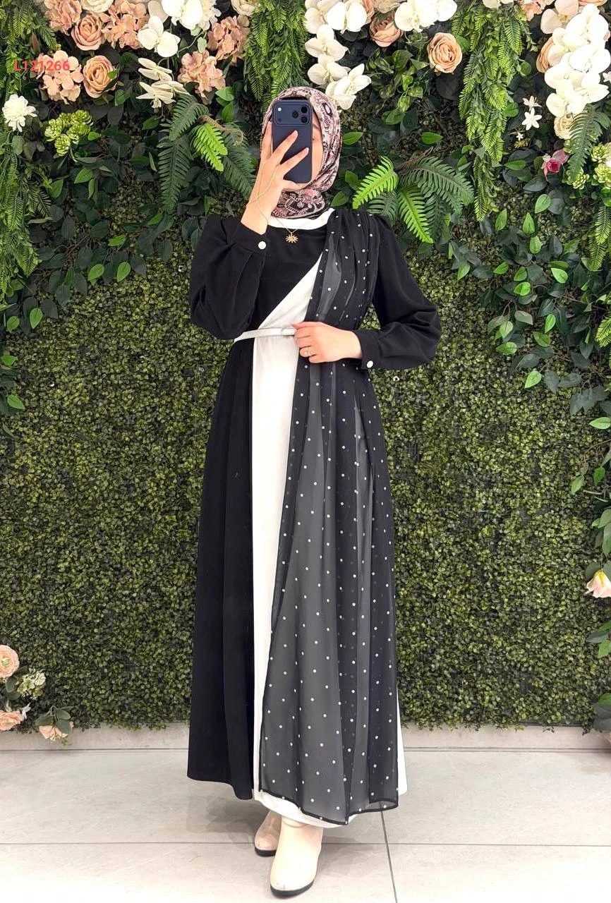 فستان كريستال كريب مع شيفون منقط