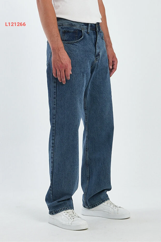 بنطلون جينز ماء عالي الخصر للرجال - تصميم واسع وبأسلوب عصري