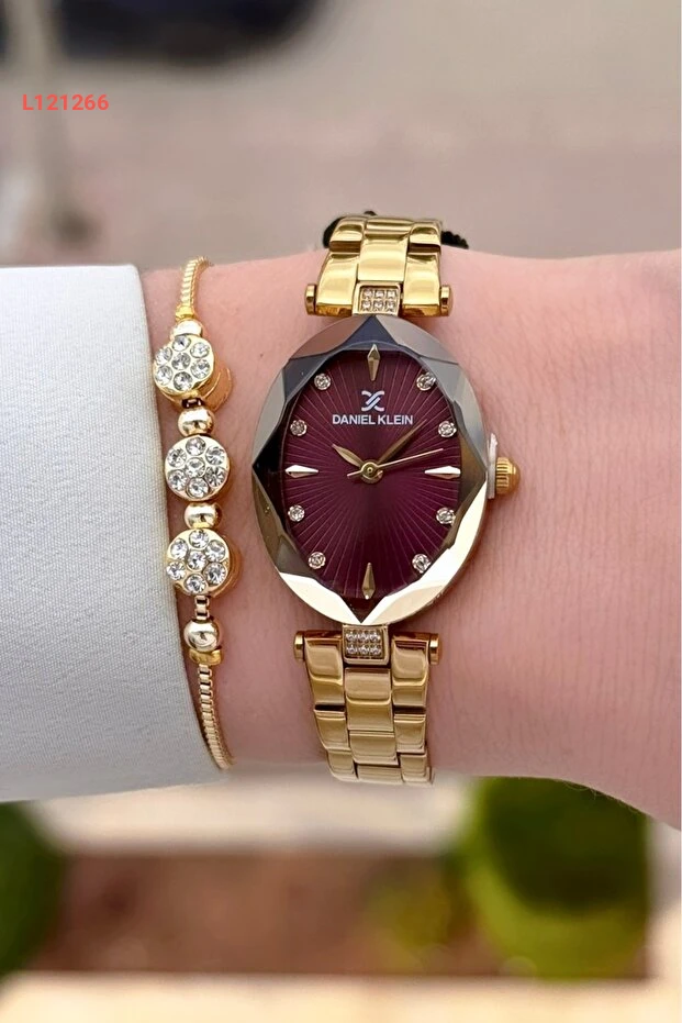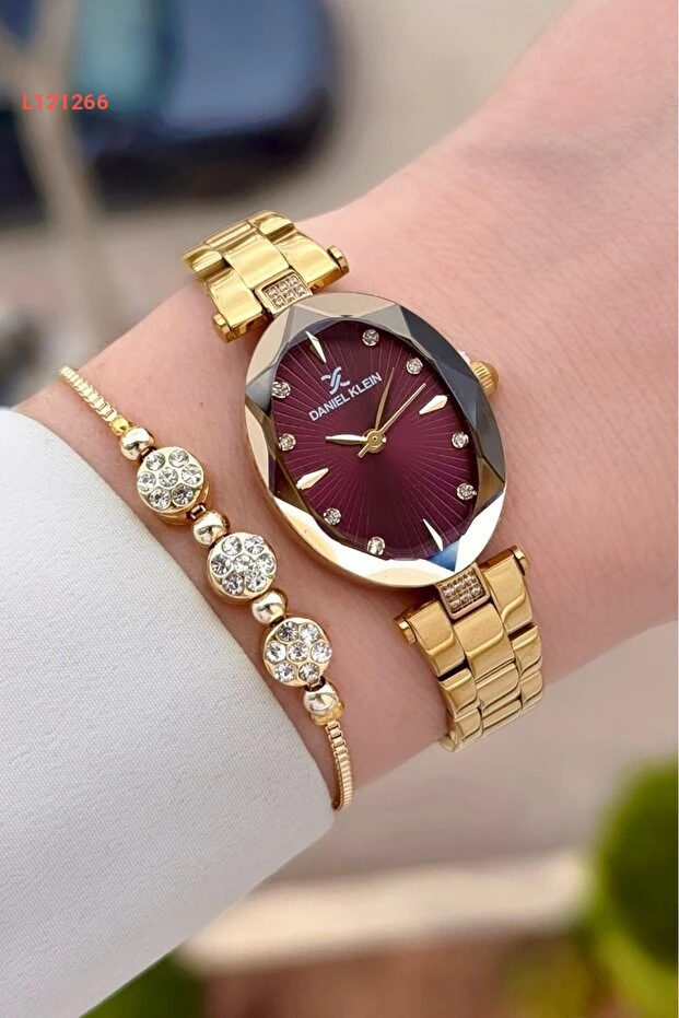 استمتعي بالأناقة الراقية مع ساعة دانيال كلاين ذات الوجه البوردو، والسوار الذهبي المميز. تصميم أنثوي يجمع بين الفخامة والراحة، يمنحك مظهرًا رائعًا يناسب جميع إطلالاتك. تضفي هذه المجموعة لمسة من السحر على معصمك، مما يجعلها خيارًا مثاليًا لكل مناسبة.