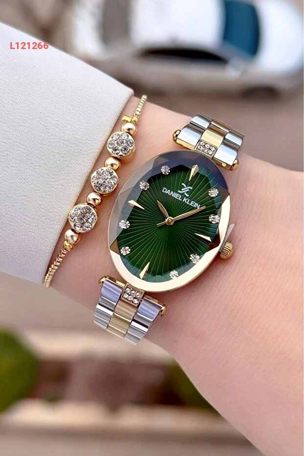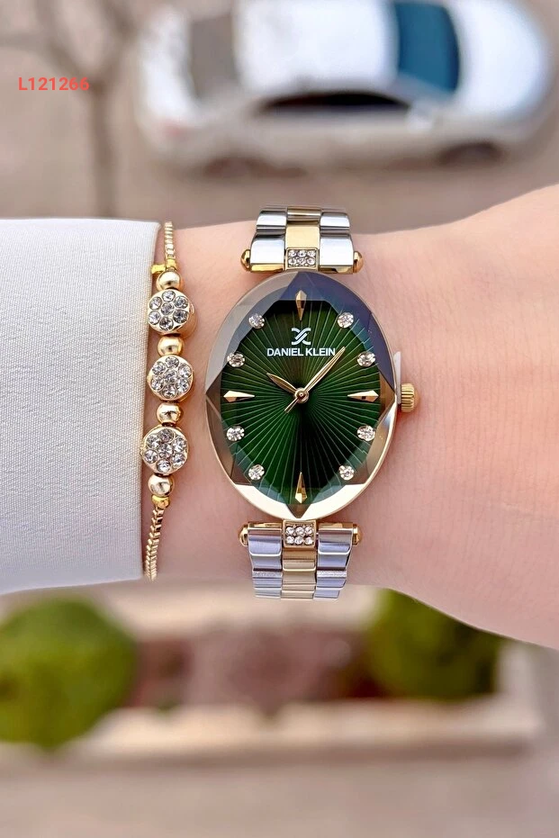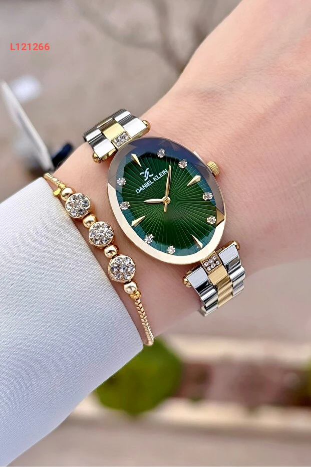 استمتعي بأناقة لا مثيل لها مع ساعة دانيال كلاين ذات القرص الأخضر وسوارها الذهبي والفضي. تجمع هذه الساعة بين الفخامة والراحة، حيث تضيف لمسة من التألق إلى إطلالتك في أي مناسبة. تصميمها العصري يعكّس ذوقك الرفيع ويضمن لكِ أناقة دائمة.