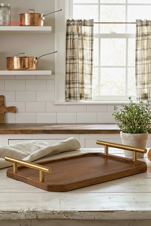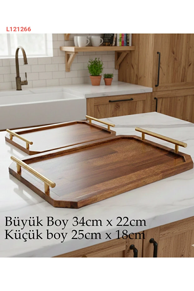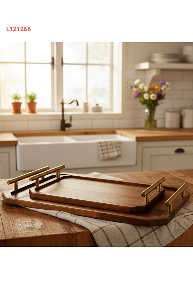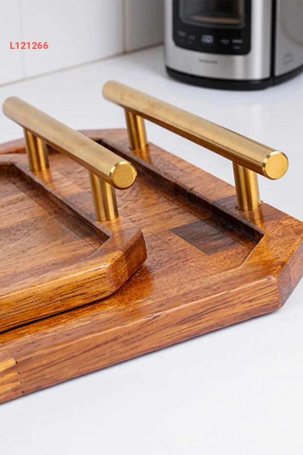 طقم صواني تقديم الإفطار الخشبية المكون من 2 قطعة – صينية تقديم شاي وقهوة