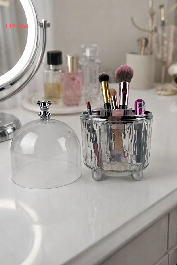 استمتع بتنظيم مستحضرات التجميل الخاصة بك بأناقة مع منظم الماكياج الشفاف دكوريف! يتميز بتصميم دوار بزاوية 360 درجة، مما يتيح لك الوصول بسهولة إلى جميع أدواتك ومستحضراتك. تضمن لك مساحة التخزين الذكية والعملية مظهرًا مرتبًا وتوفير الوقت في كل مرة تستخدمين فيها مكياجك.
