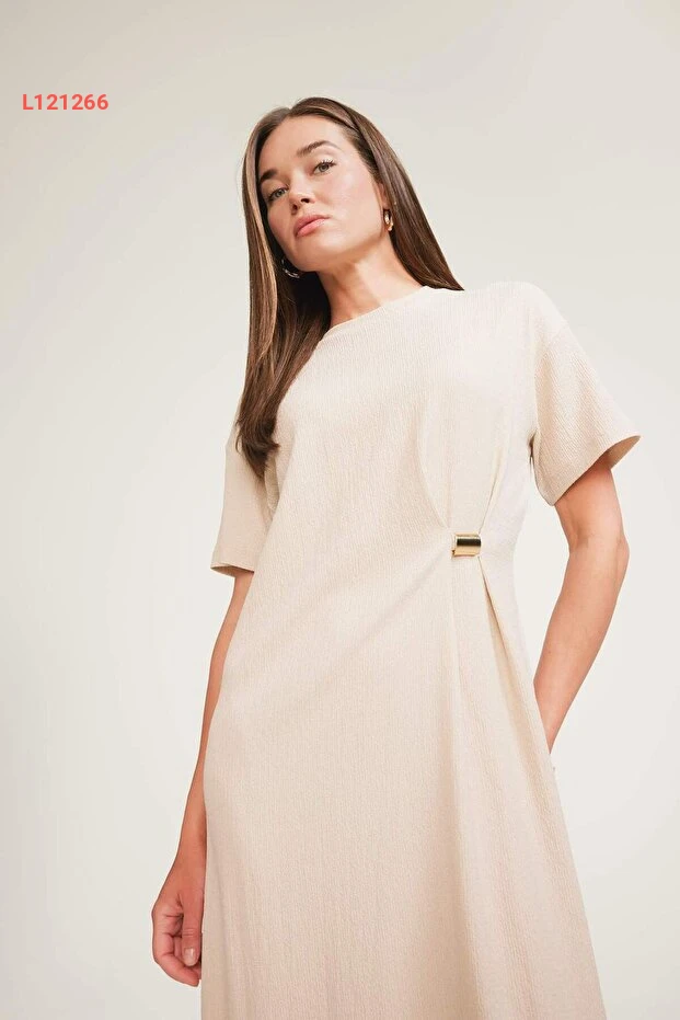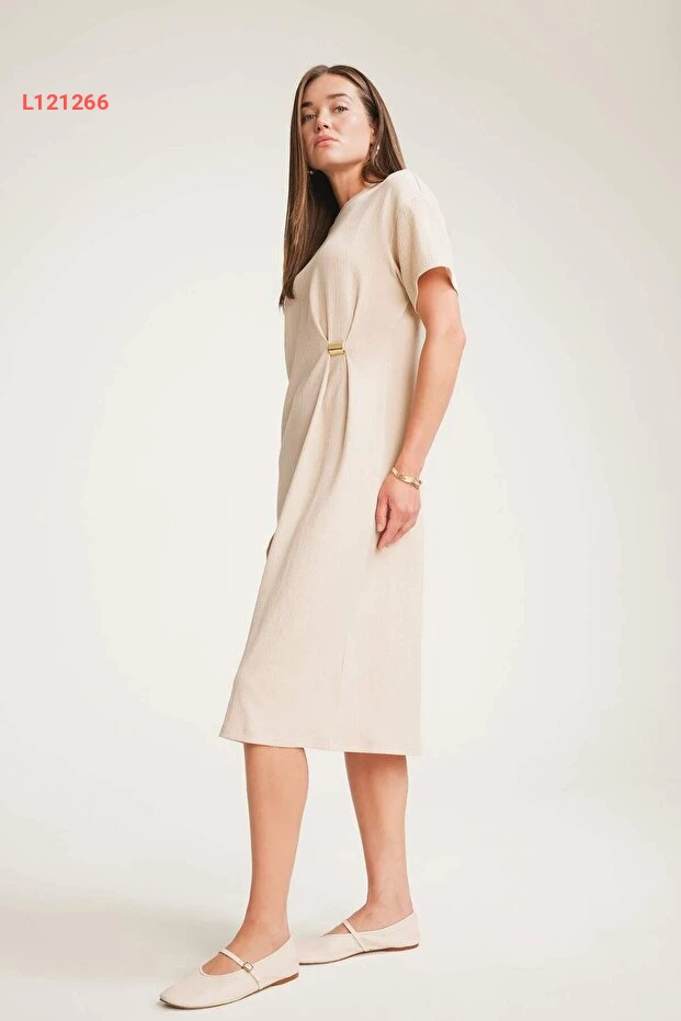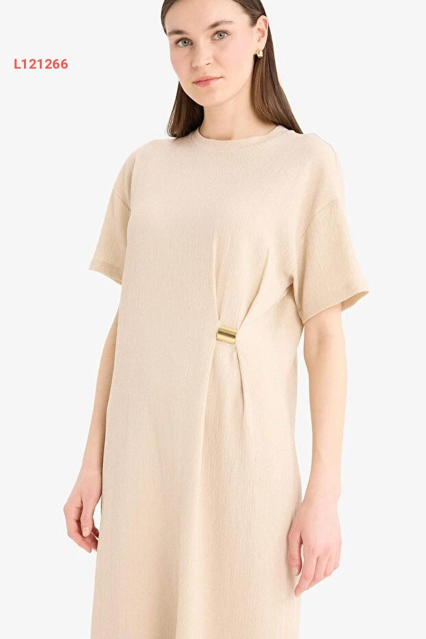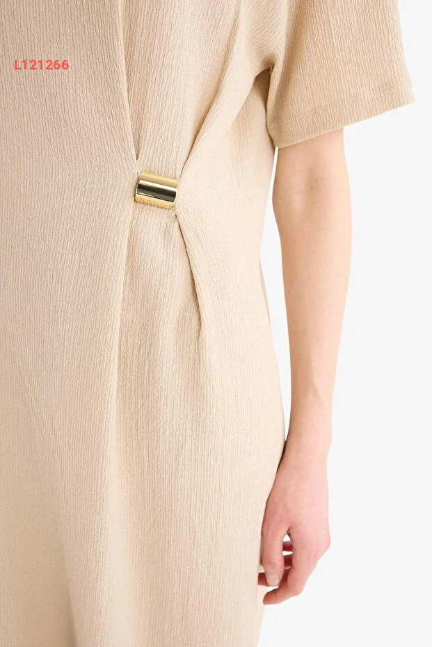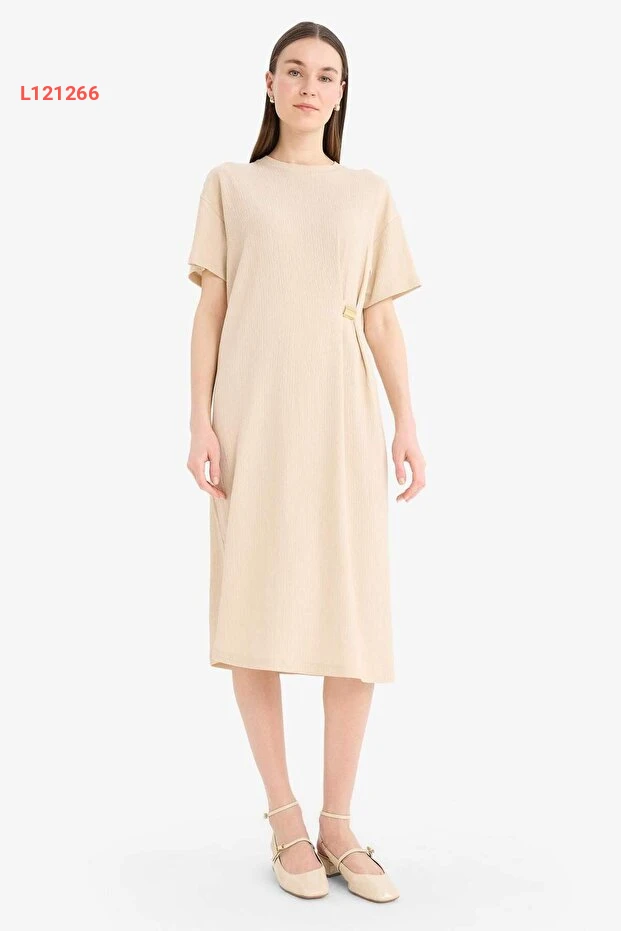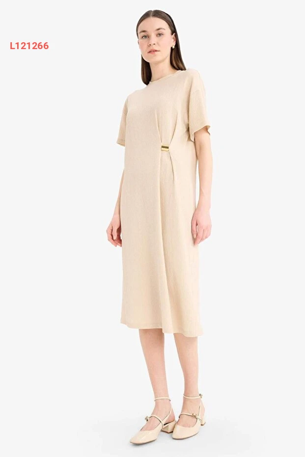 فستان صيفي متوسط الطول بأكمام قصيرة مع تفاصيل دبابيس من ديفكتو