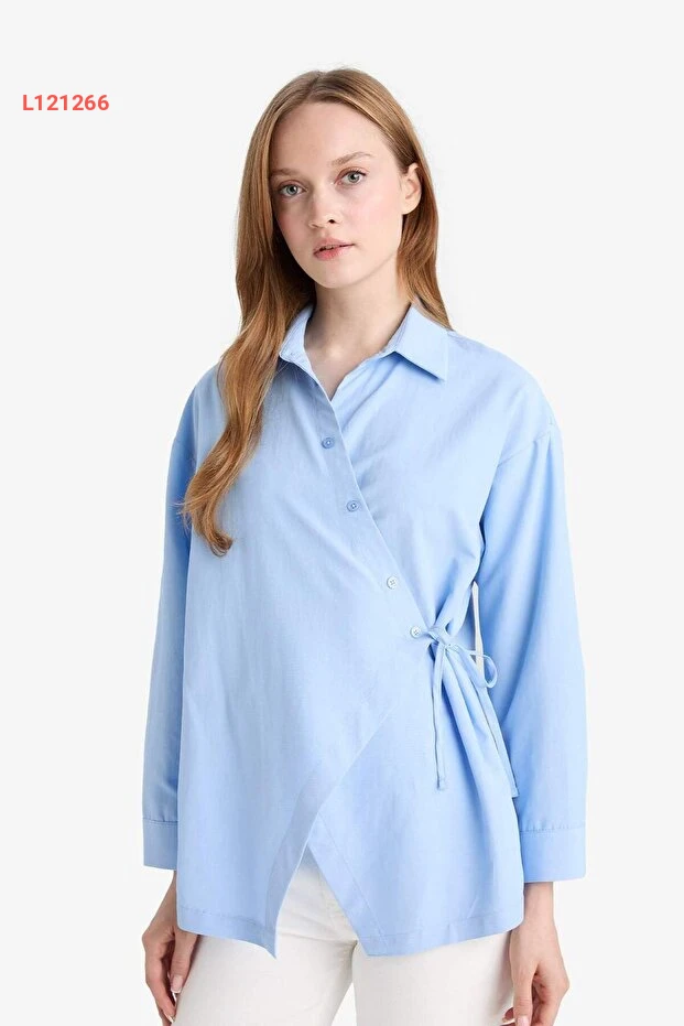 استمتع بأناقتك مع قميص Defacto المصنوع من قماش البوبلين الناعم، الذي يُبرز تصميمه العصري بقصة كلاسيكية تناسب جميع الأذواق. يتميز بياقة أنيقة وذيل برباط أمامي لإطلالة مميزة، مما يجعله الخيار المثالي لإضافة لمسة من التألق إلى إطلالتك اليومية. ارتديه مع بنطال جينز أو تنورة للحصول على مظهر متوازن وأنيق في كل المناسبات.
