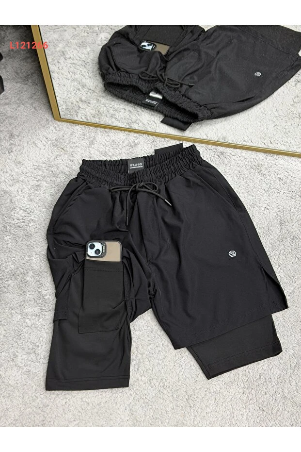 شورت ديمينتي 2 في 1 مع جيب للهاتف وحمالة منشفة للتمارين الرياضية و اللياقة البدنية