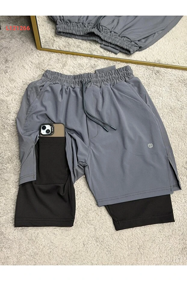 شورت داخلي رياضي 2 في 1 بحقيبة هاتف وسباكة للتمارين الرياضية