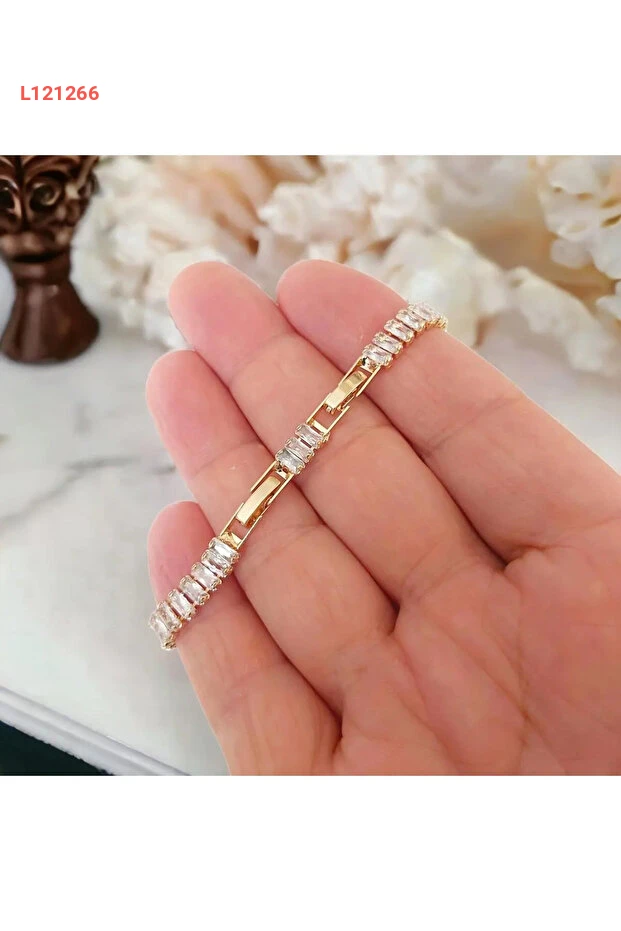 بلاطين 5 مم براك ناعم بذهب 14 قيراط مع أحجار باغيت - سوار مقاوم للصدأ للنساء بطول 16+2 سم