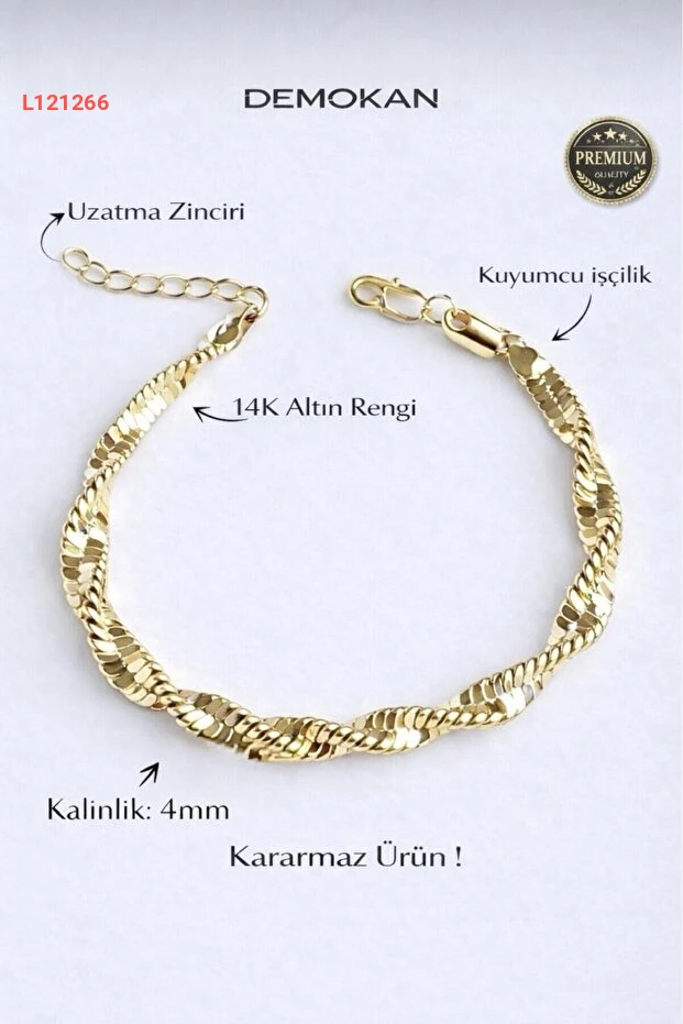 استمتعي بأناقة فريدة مع سوار ديموكا النسائي المصنوع من الفولاذ المقاوم للصدأ بلون الذهب عيار 14 قيراط. يتميز بتصميمه الجذاب برباط إيطالي عريض بسمك 4 مم، مما يضمن لكِ ديمومة فائقة ومظهرًا أنيقًا في كل المناسبات. كوني متميزة بإطلالة ساحرة لا تُنسى.