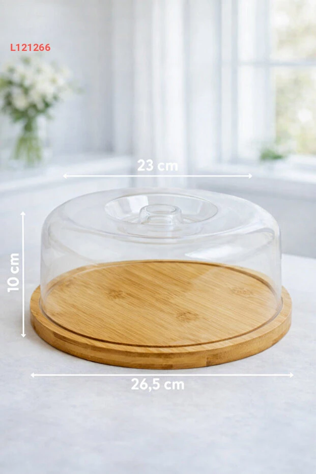 طقم تقديم الكيك الشفاف مع غطاء من بامبو - حافظة كعكة كبيرة