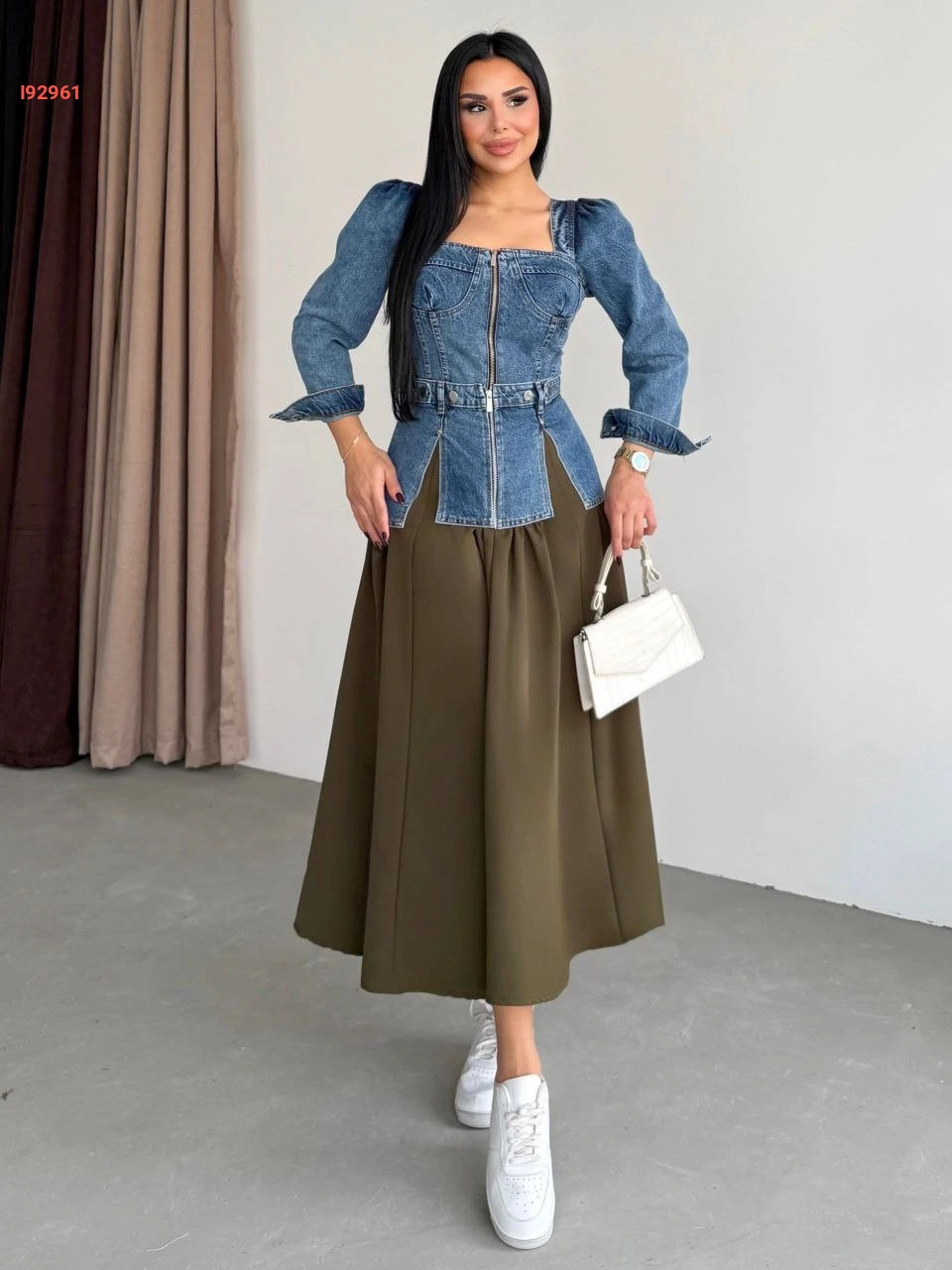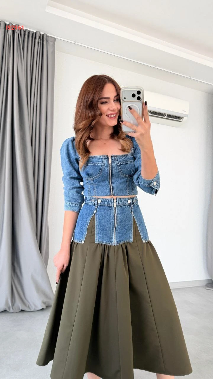 طقم بلوزة جينز مع تنورة