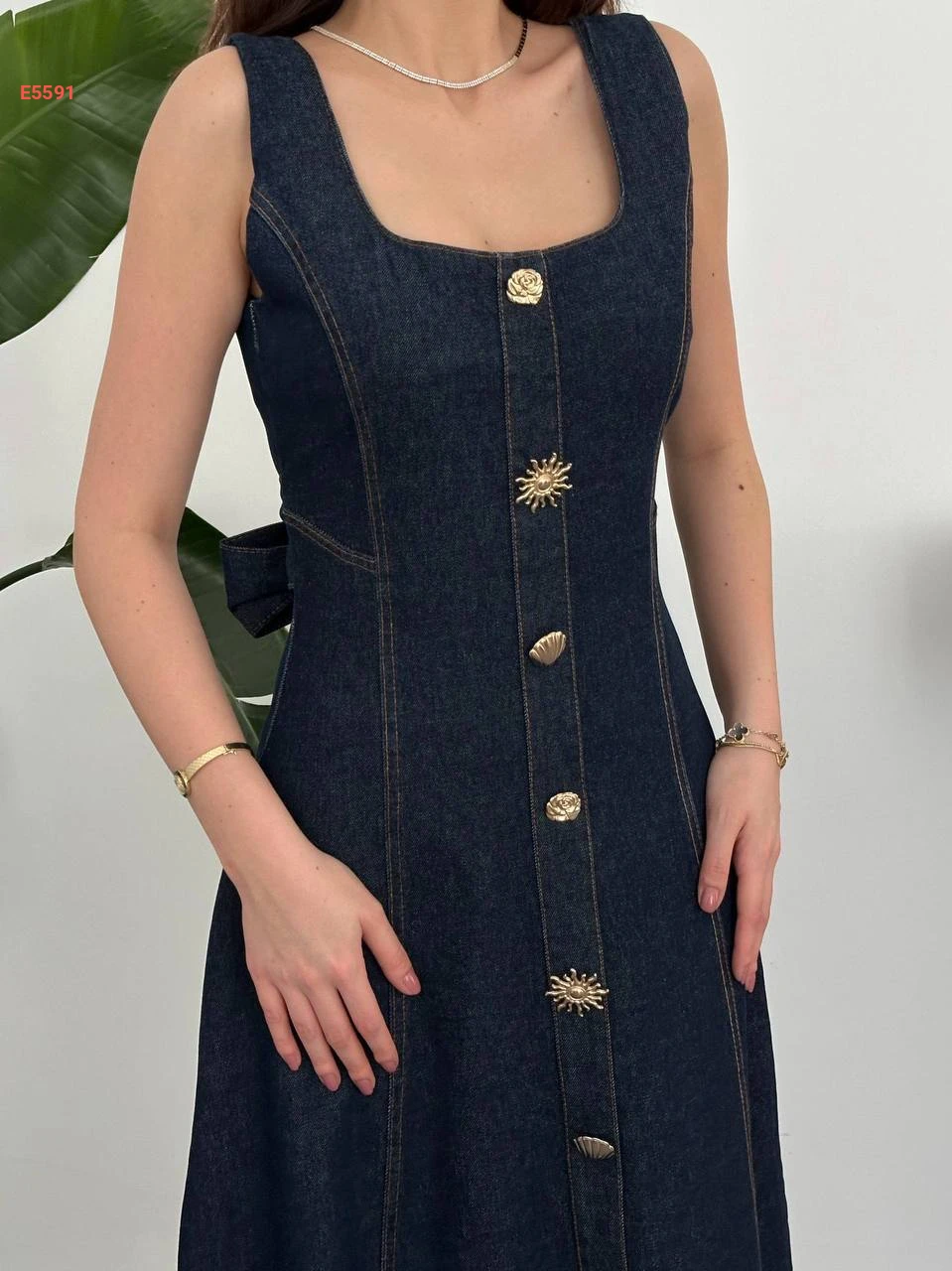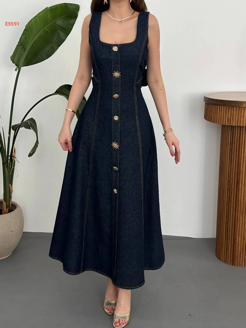 فستان جينز حفر كلوش باكسسوار دهبي