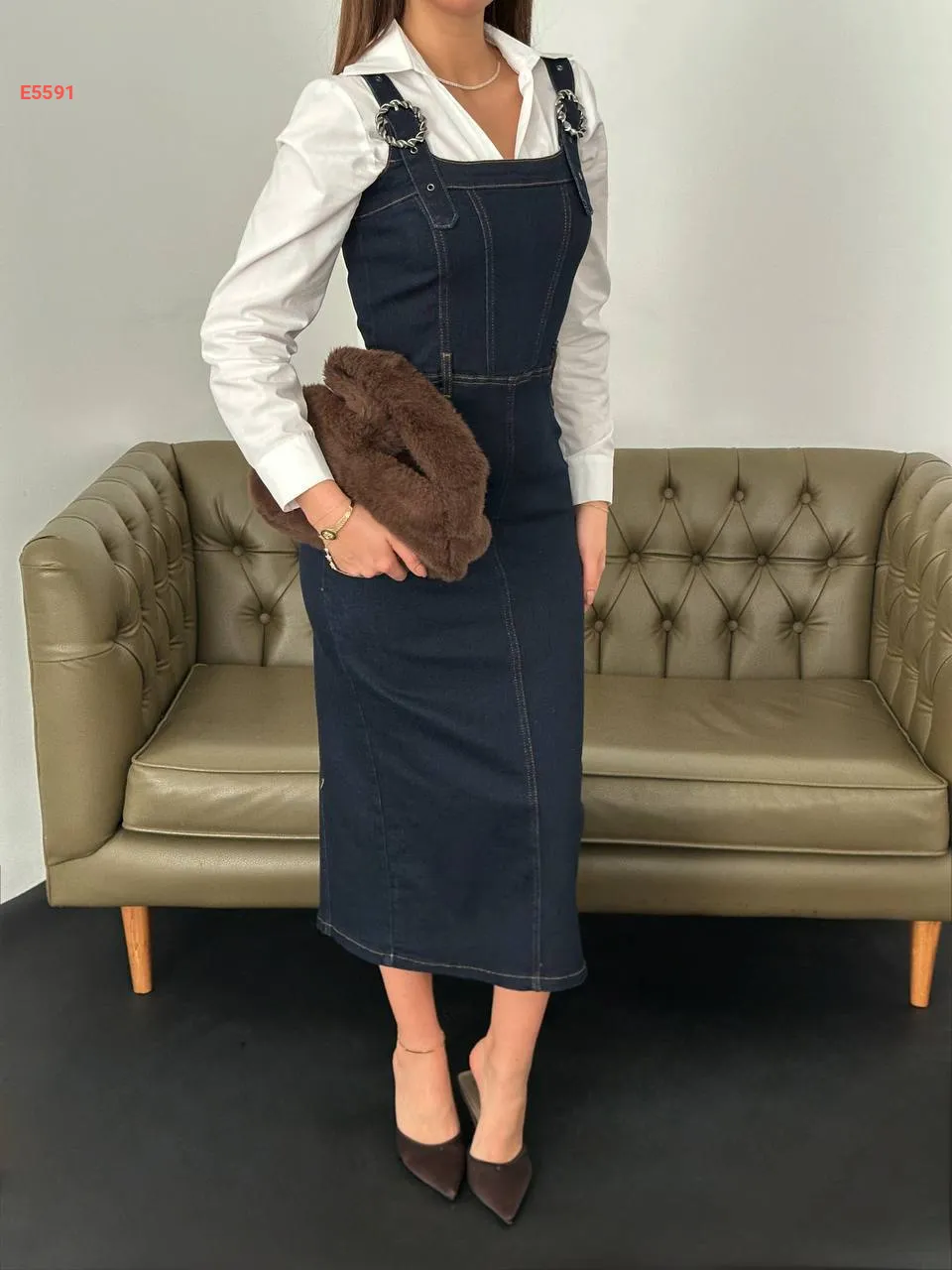 فستان جينز بحمالات