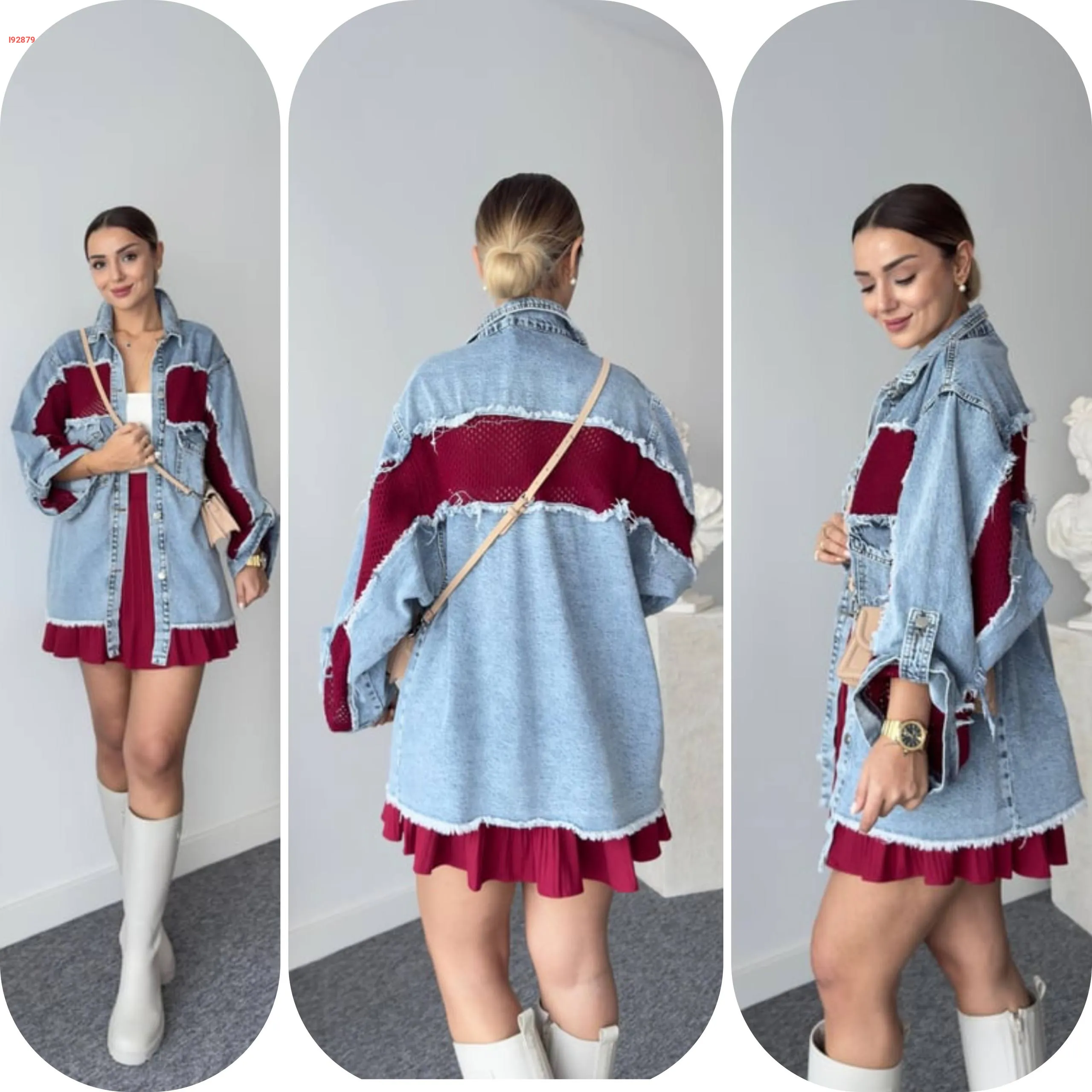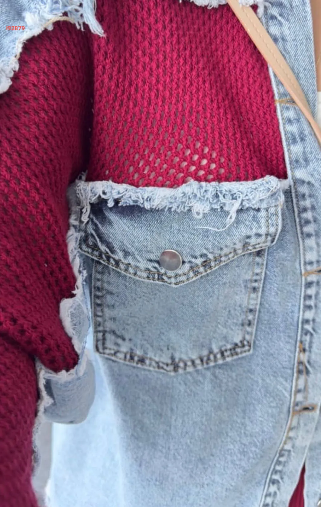 جاكيت جينز بتفاصيل تريكو مفرغة