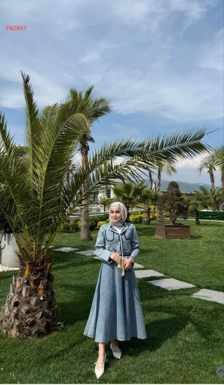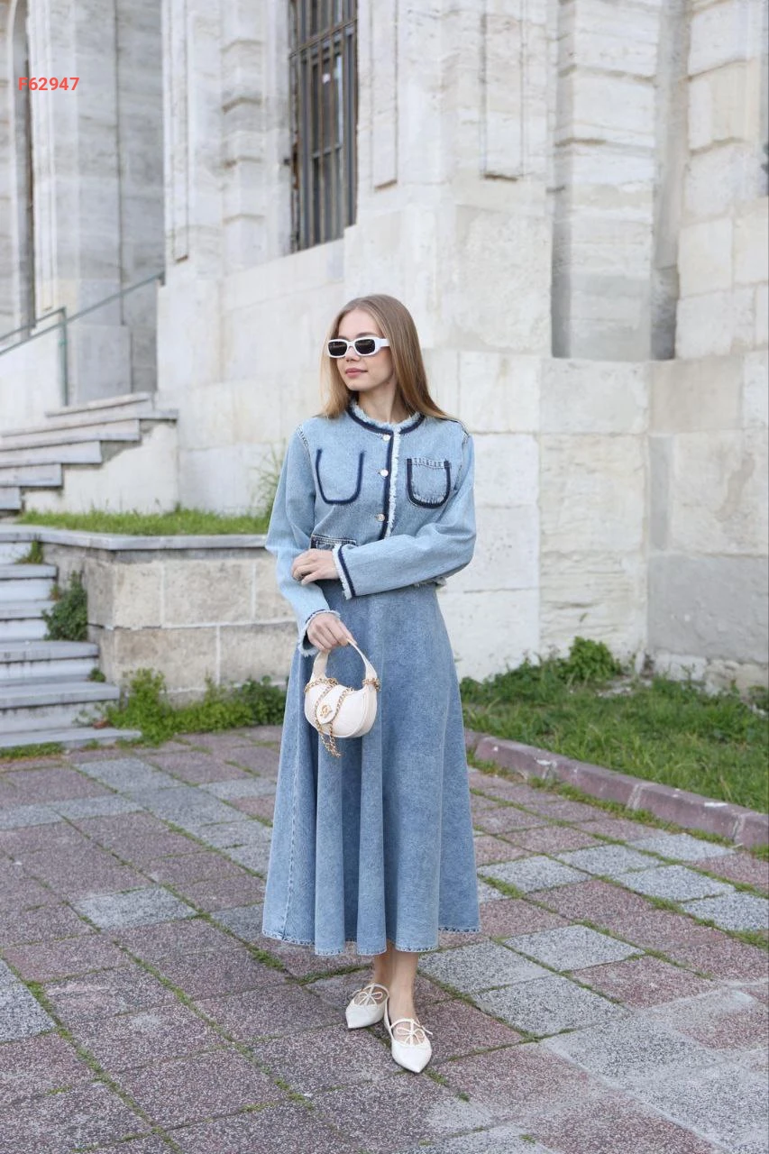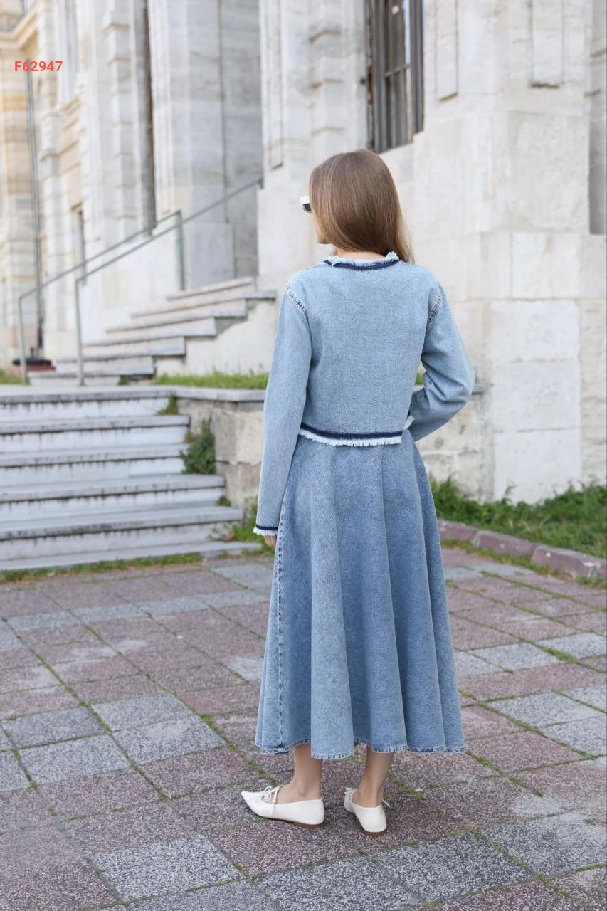 طقم تنورة وجاكيت جينز