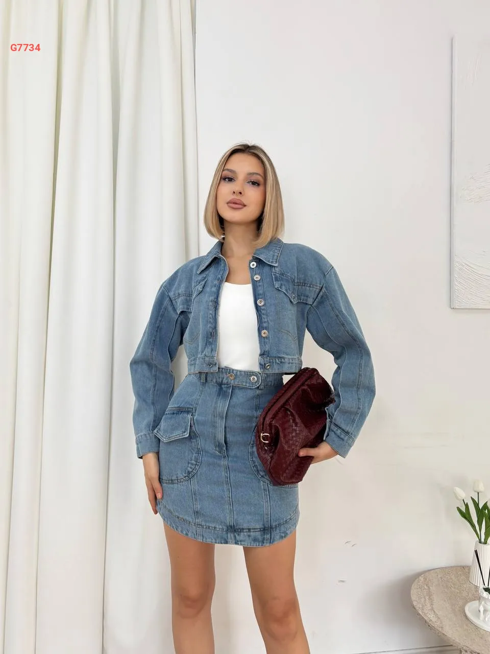 طقم تنورة جينز قصير وجاكيت