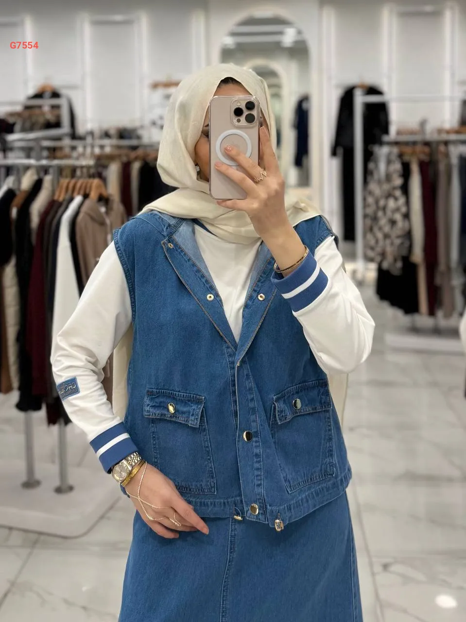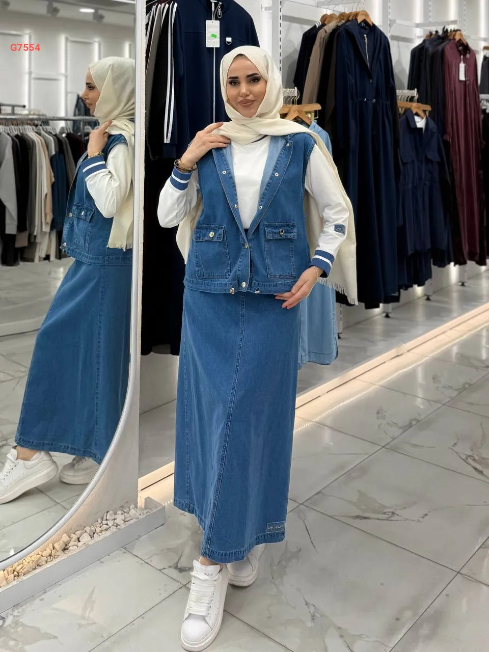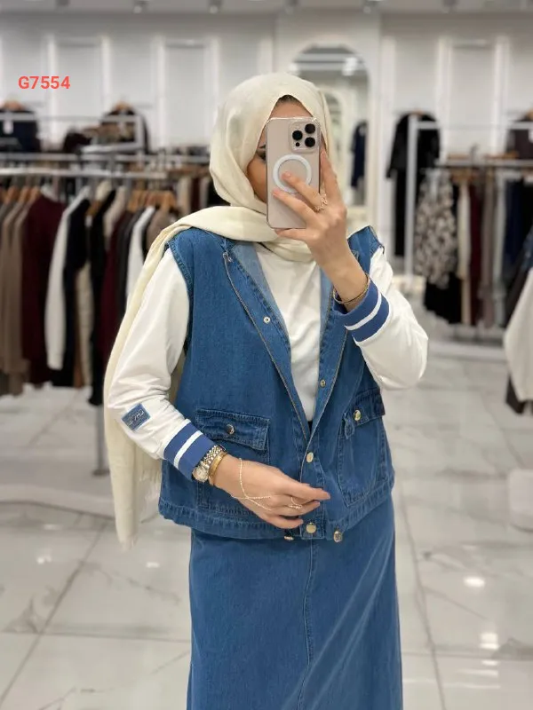 طقم تنورة جينز ، كبس بجيب كبس