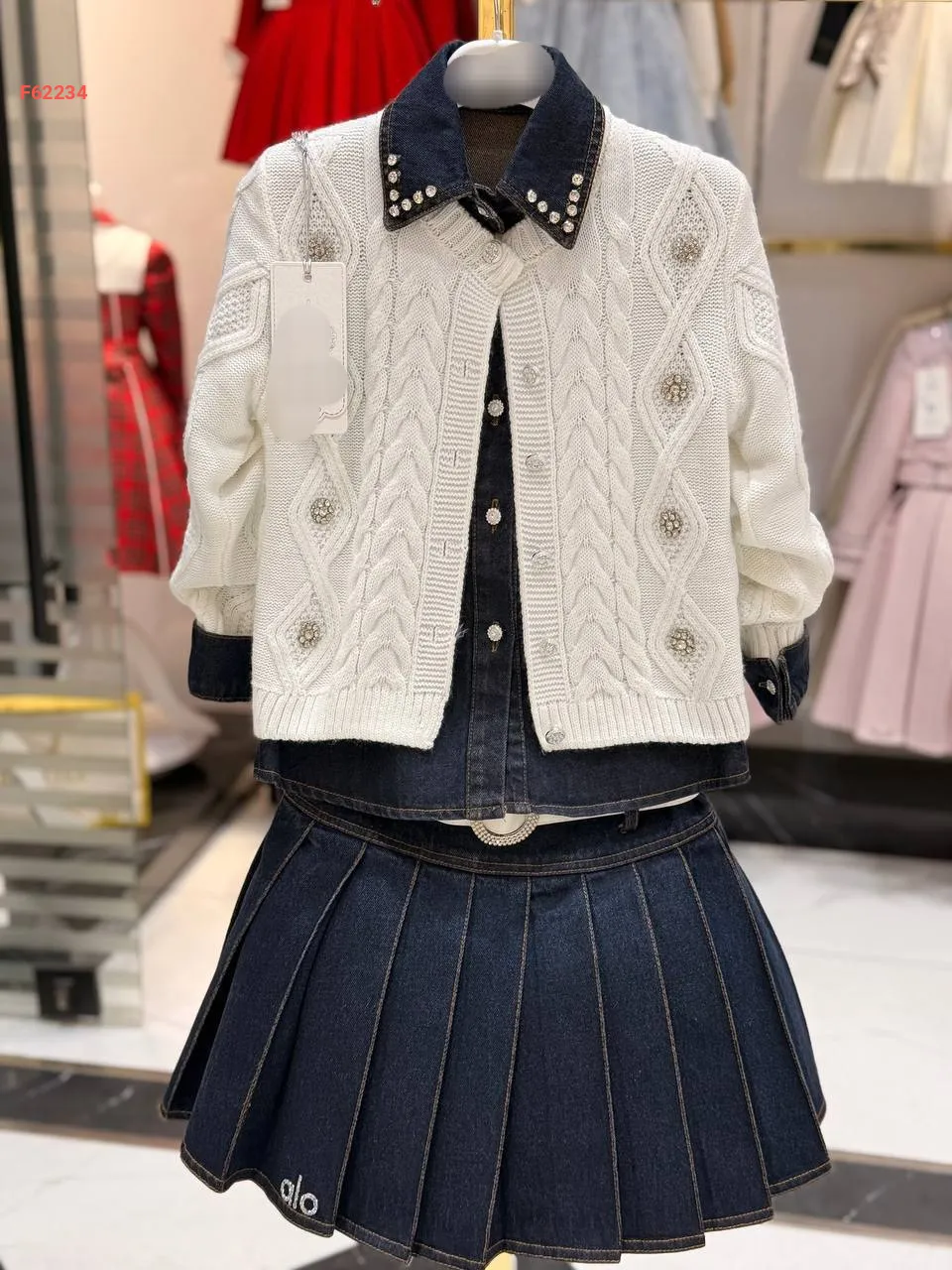 طقم تنورة جينز بناتي مع جاكيت صوف